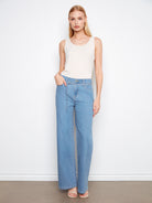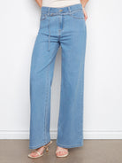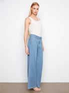 Belted Stretch Denim Wide Leg