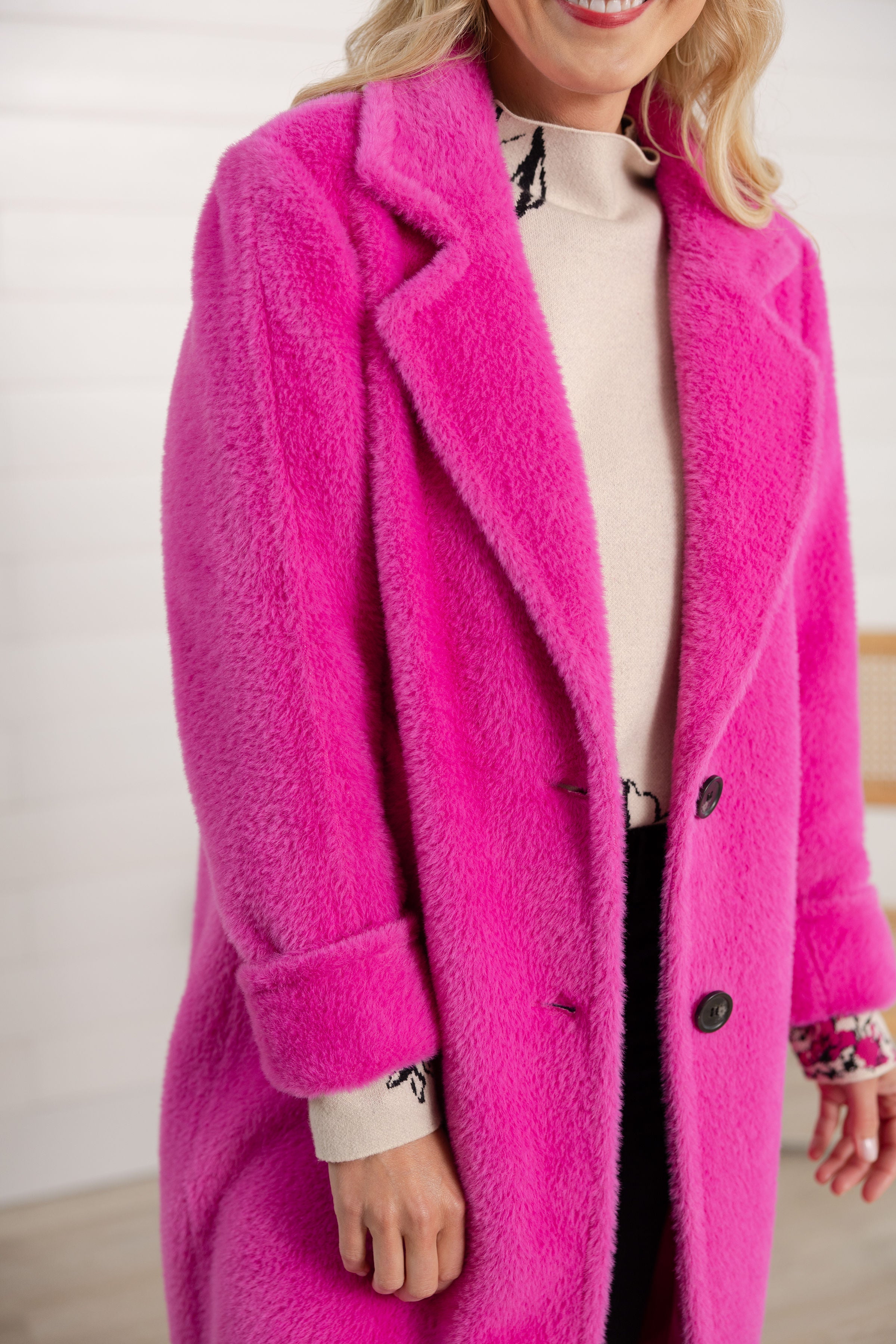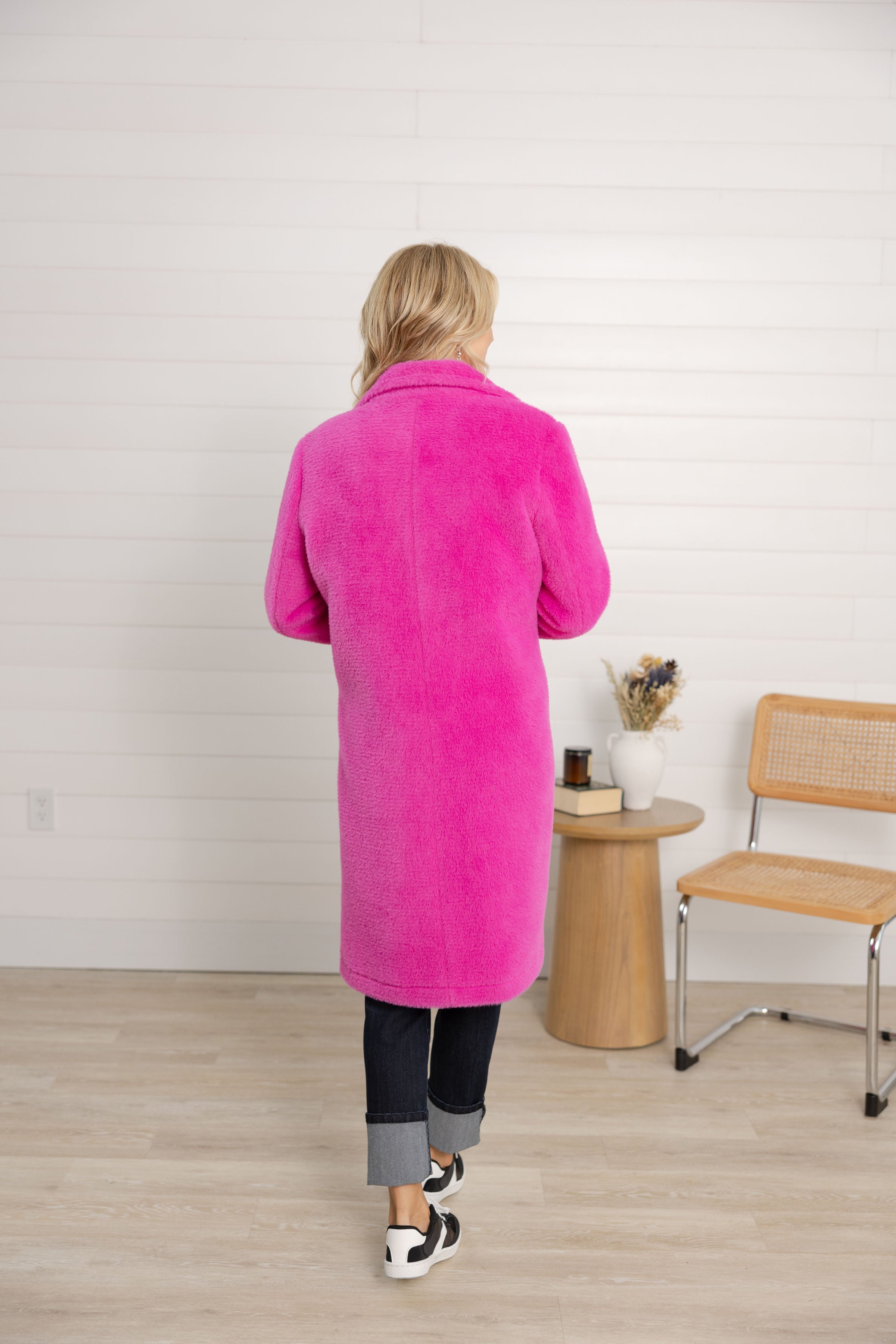 Stylish, fun, and comfortable; what more could you want?! This coat has you covered from morning to evening. Throw it on for a warm addition and for an incredible pop of color.