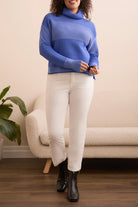Cozy meets contemporary in this ribbed turtleneck sweater, featuring a high-low hem, side slits, and subtle stripe detailing. The relaxed fit offers effortless comfort, making it a go-to layer for cooler days.
