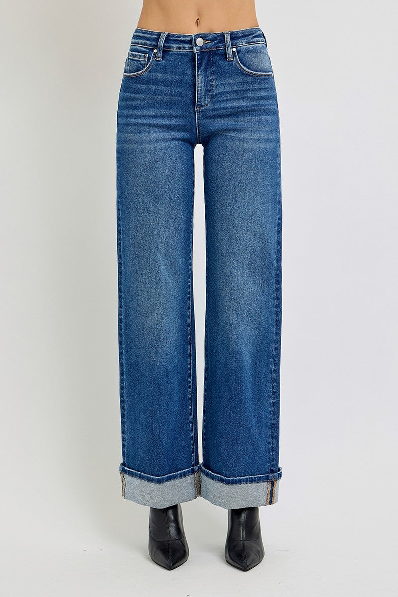 High Rise Long Cuffed Wide Leg Jean