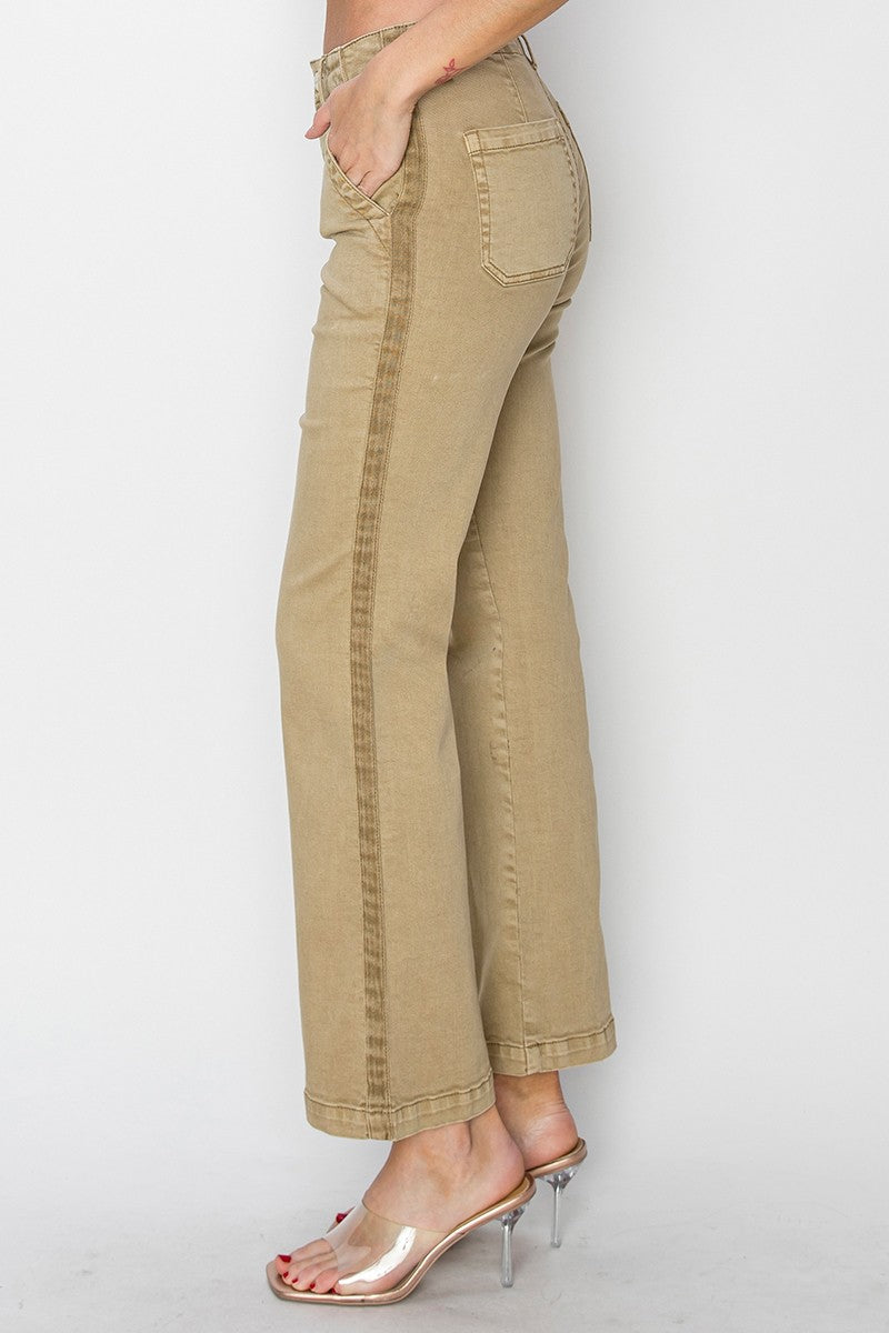 *FINAL SALE* High Rise Side Twill Tape Detail Straight Leg Jean