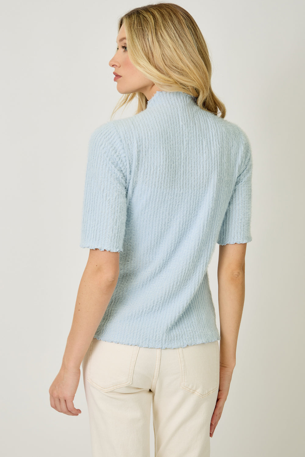 *FINAL SALE* Fuzzy Lettuce Edge Detail Fitted Mock Neck Top