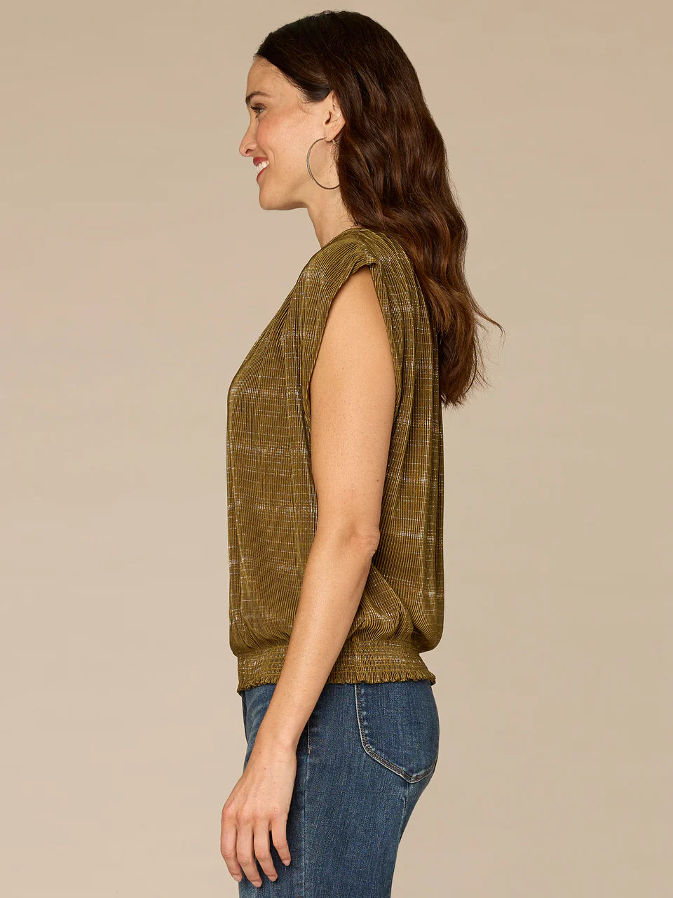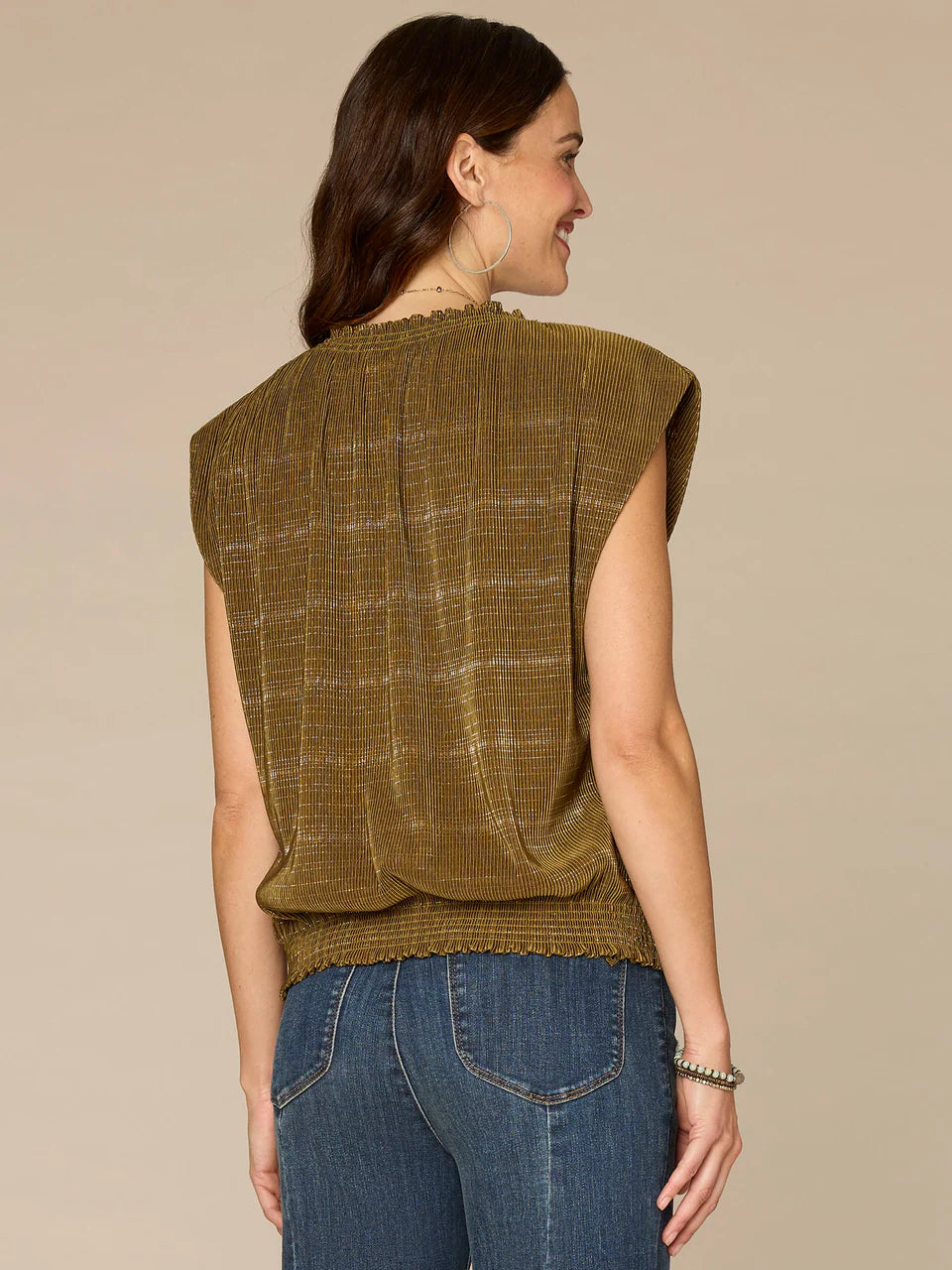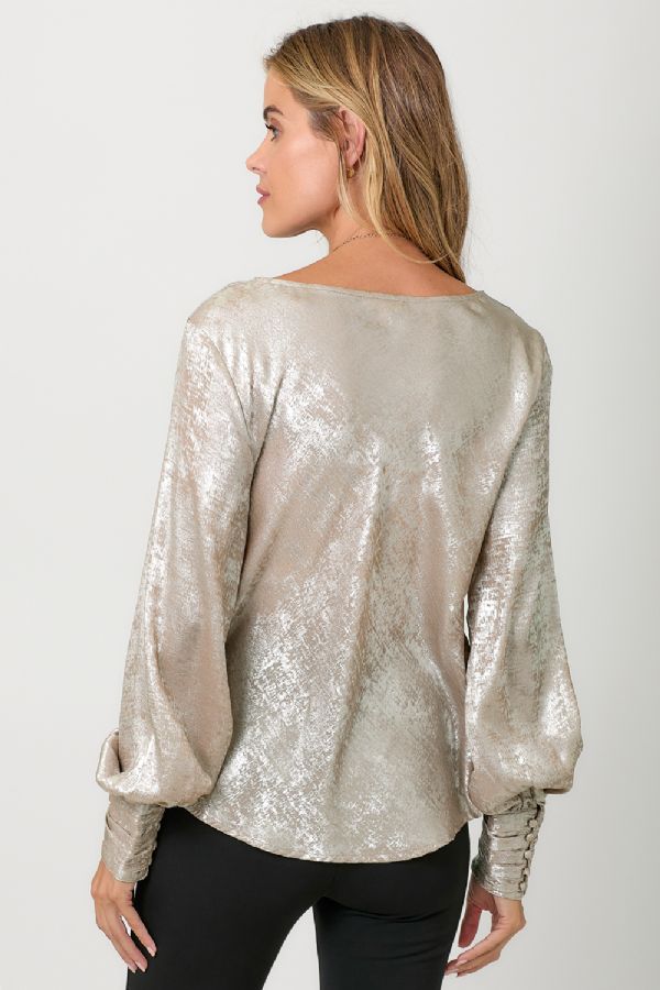 *FINAL SALE* Cowl Neck Metallic Blouse with Bubble Sleeve