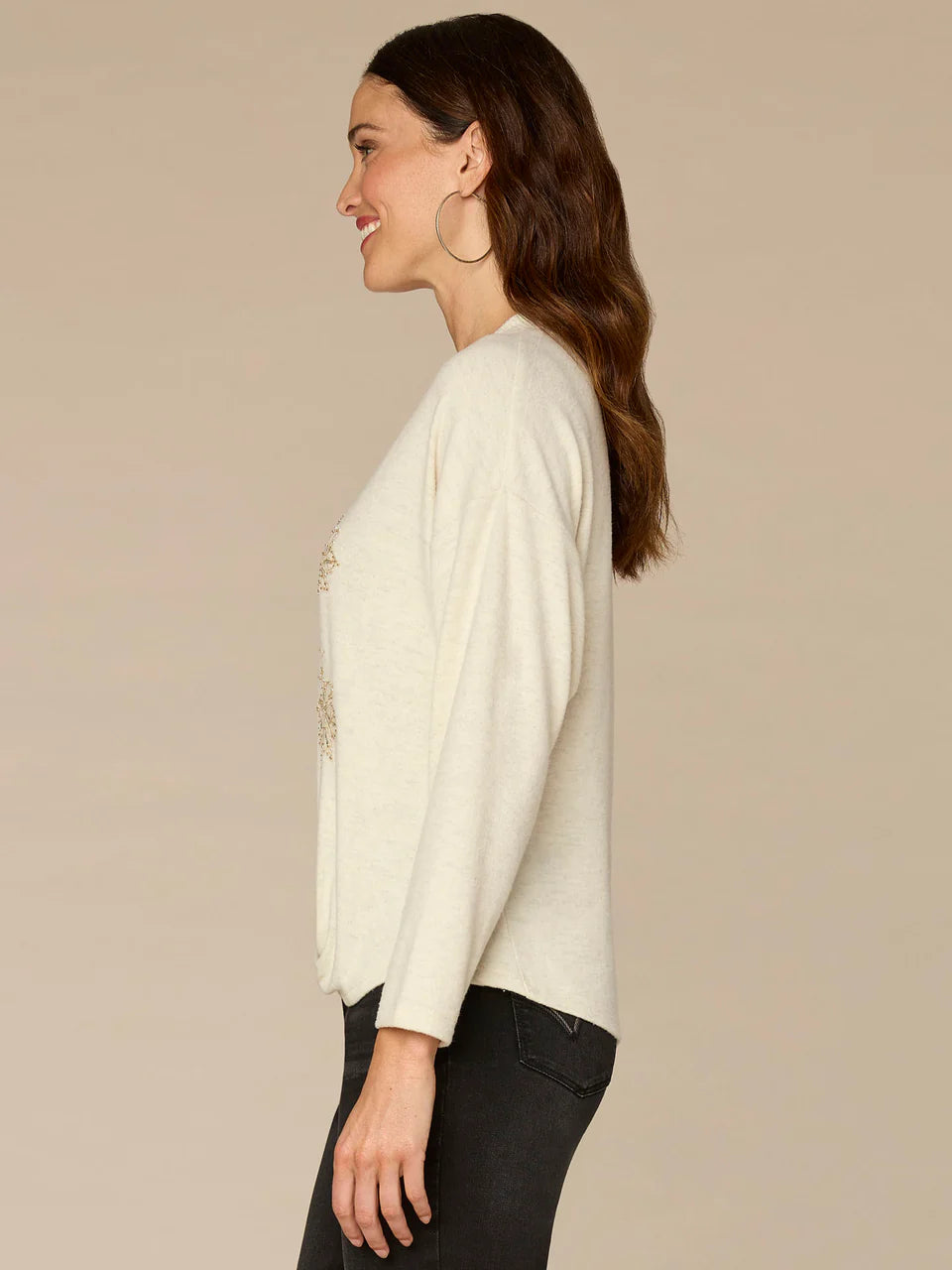 *FINAL SALE* Long Sleeve V-Neck Knot Hem Knit Top with Beaded Floral Embroidery