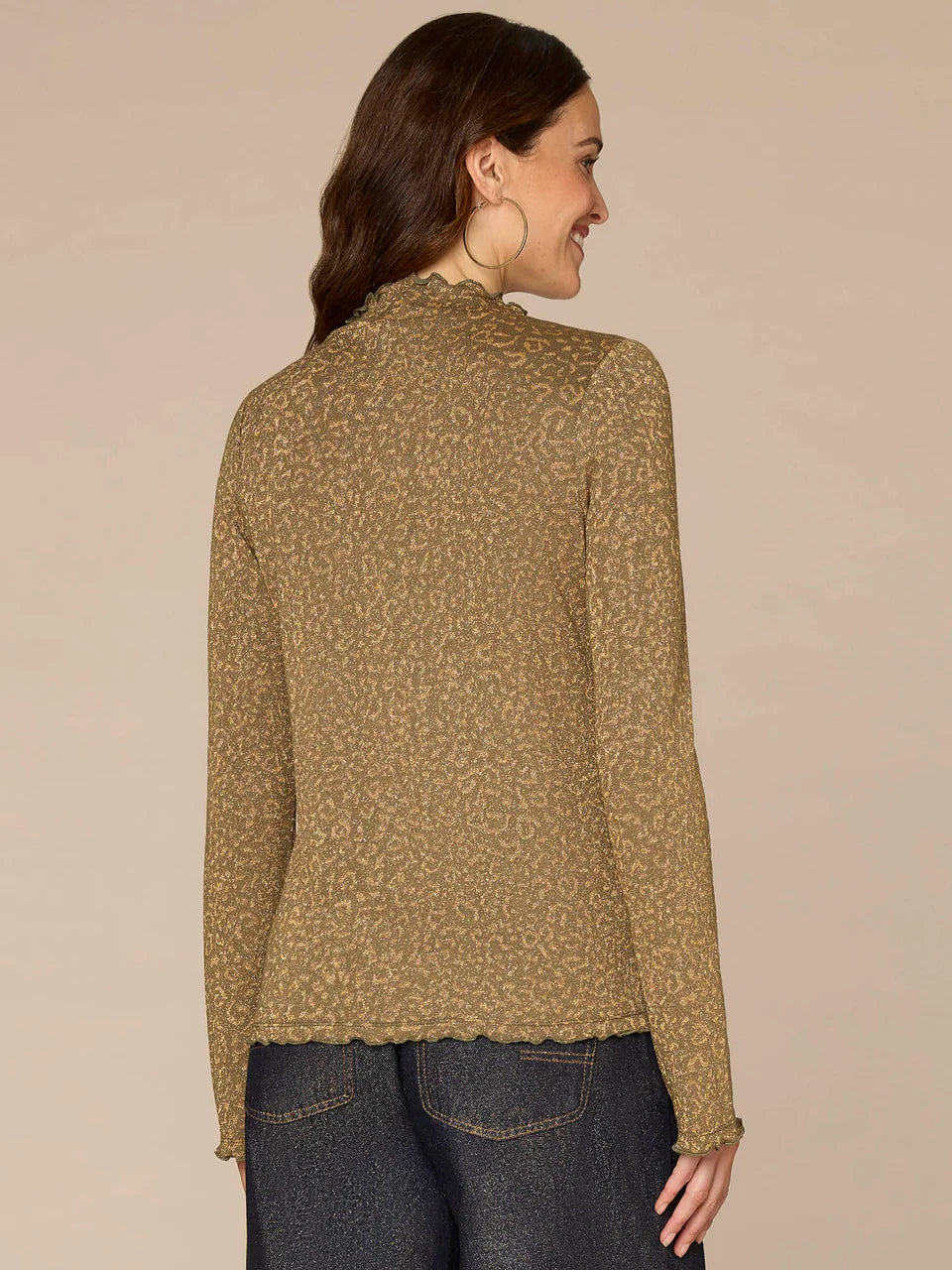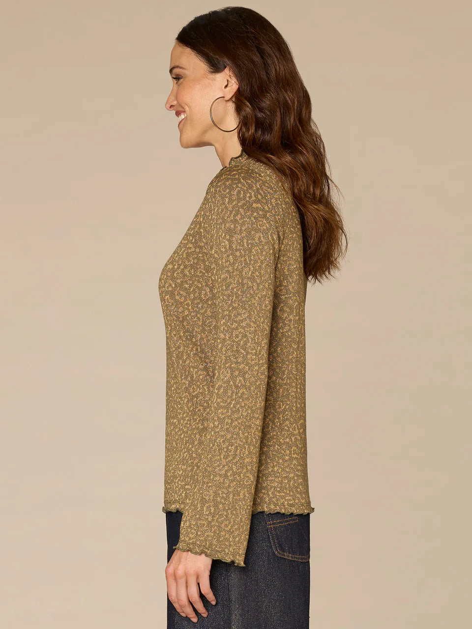 *FINAL SALE* Long Bell Sleeve Mock Neck Knit Top with Lettuce Edge Detail