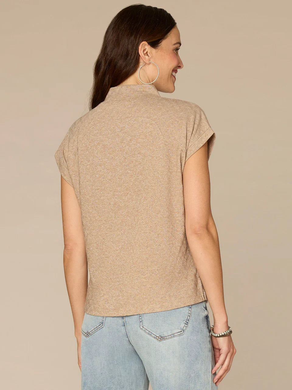*FINAL SALE* Extended Cap Sleeve Mock Neck Slit Hem Mixed Media Knit Top