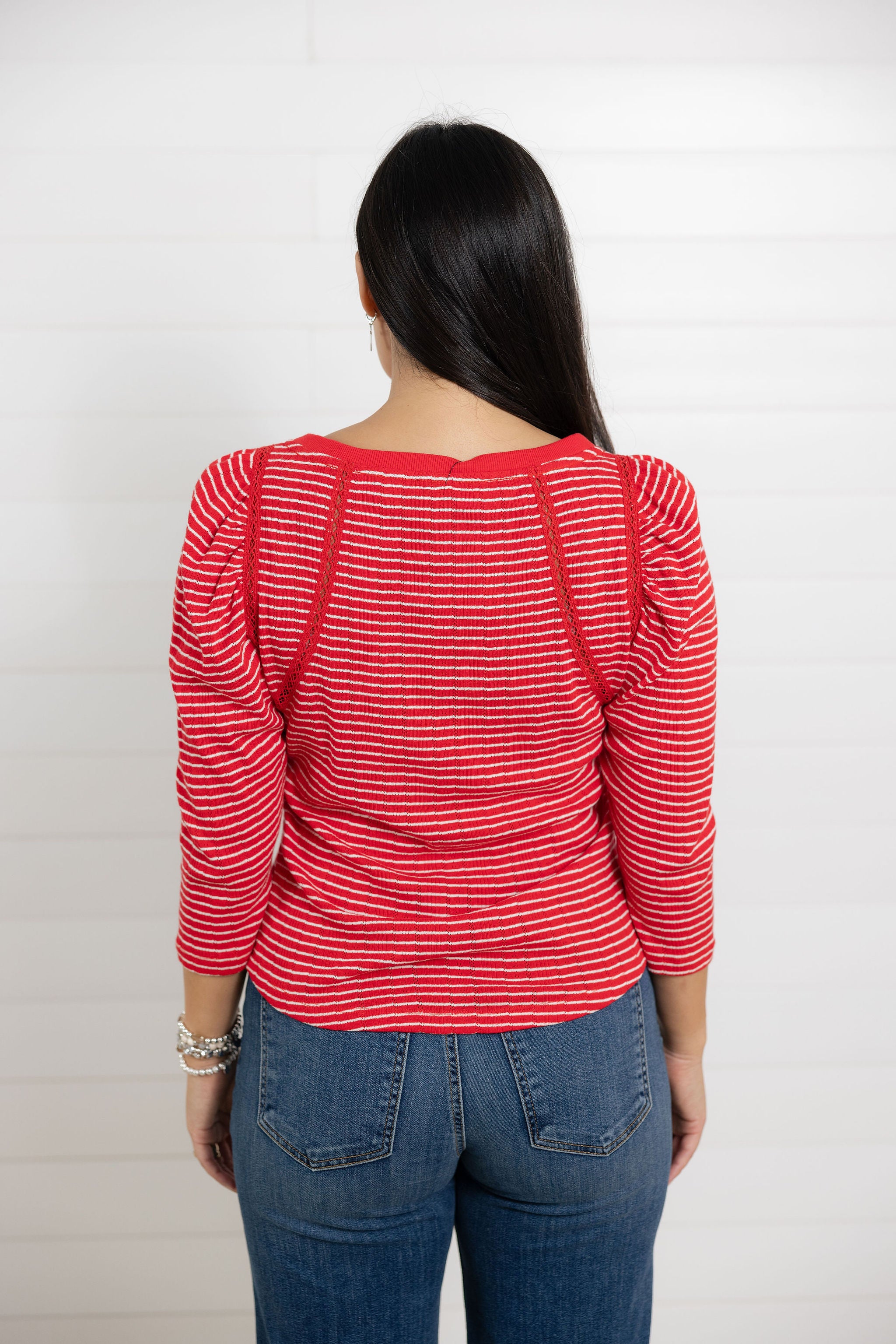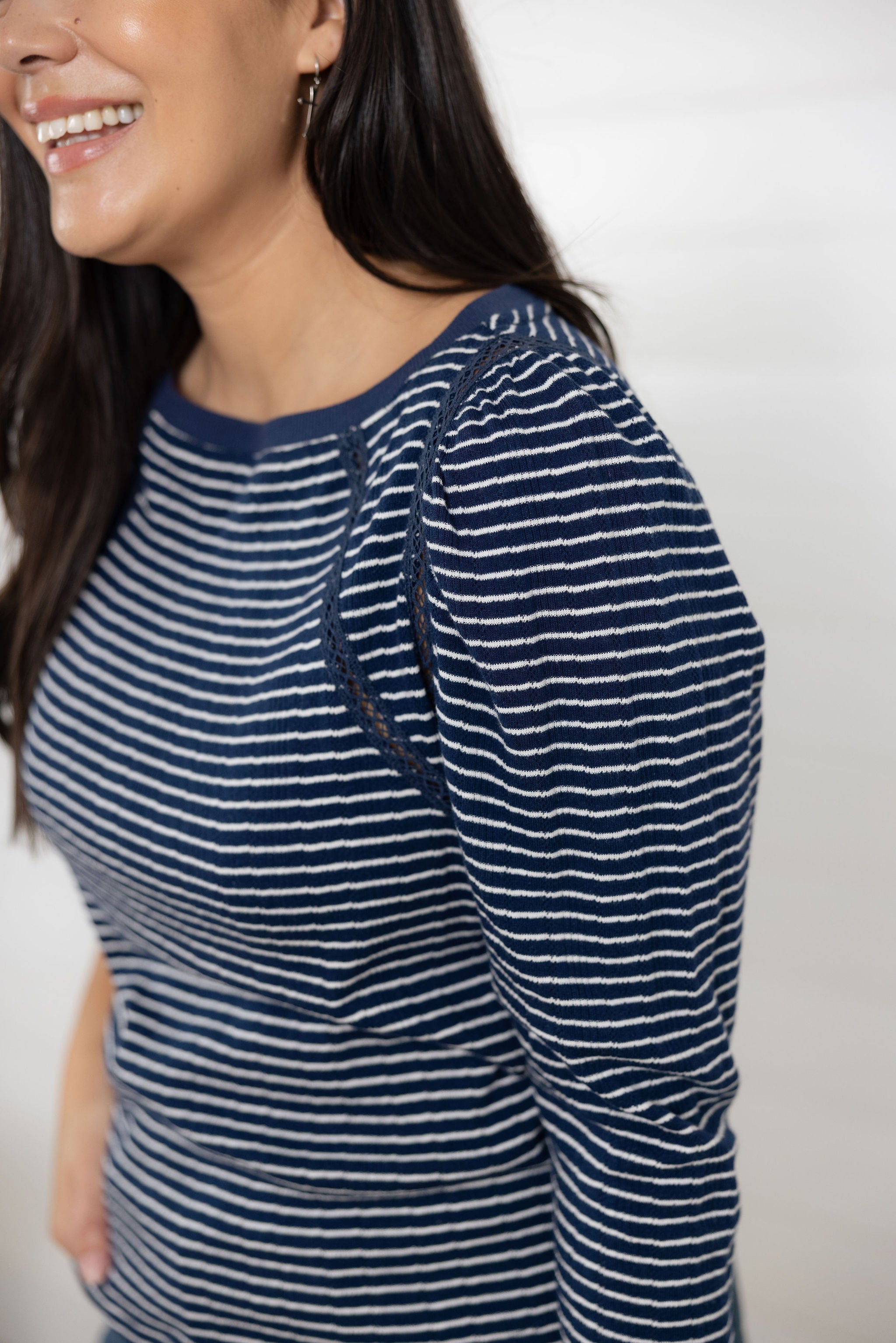 *FINAL SALE* 3/4 Sleeve Striped Knit Top with Crochet Detail