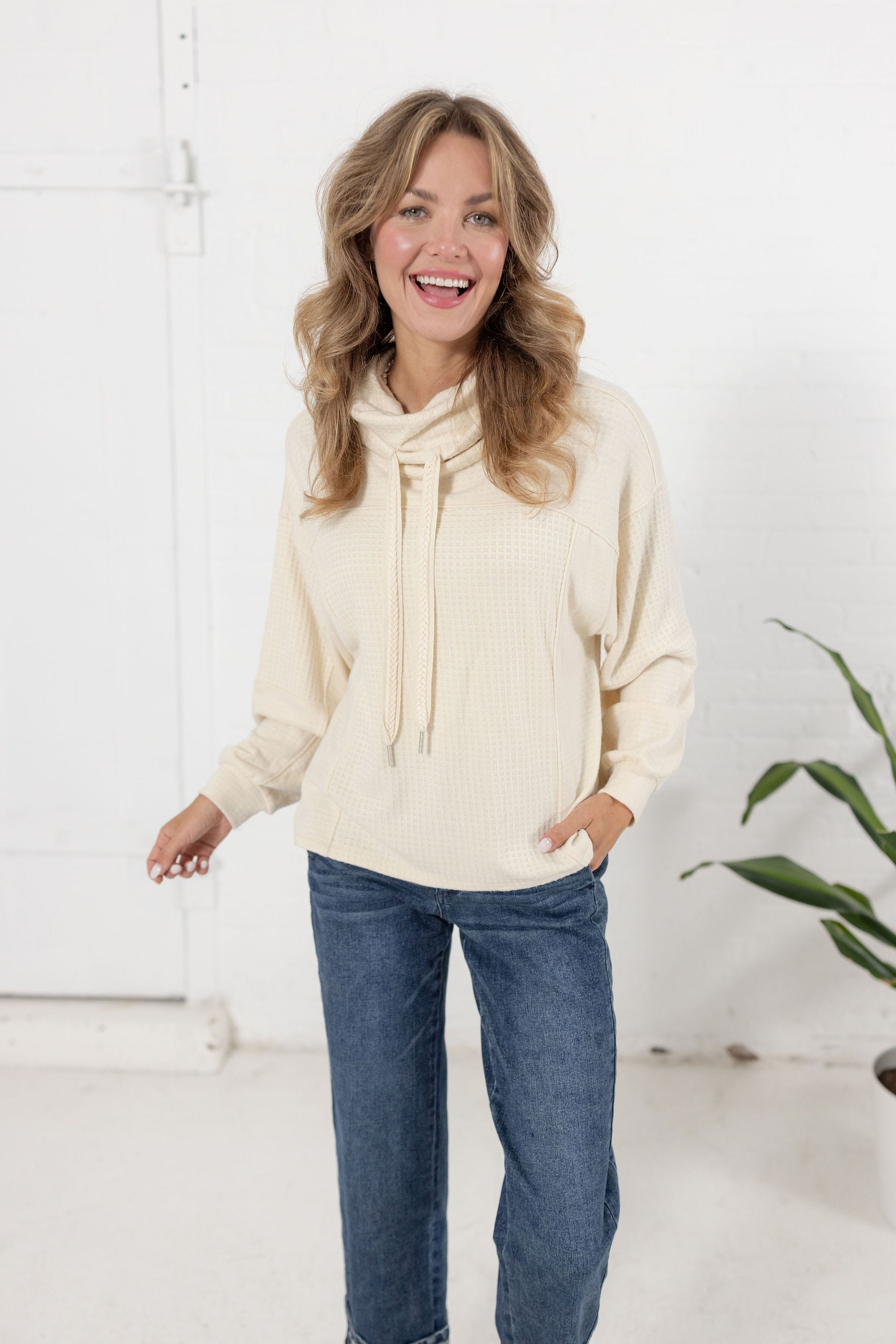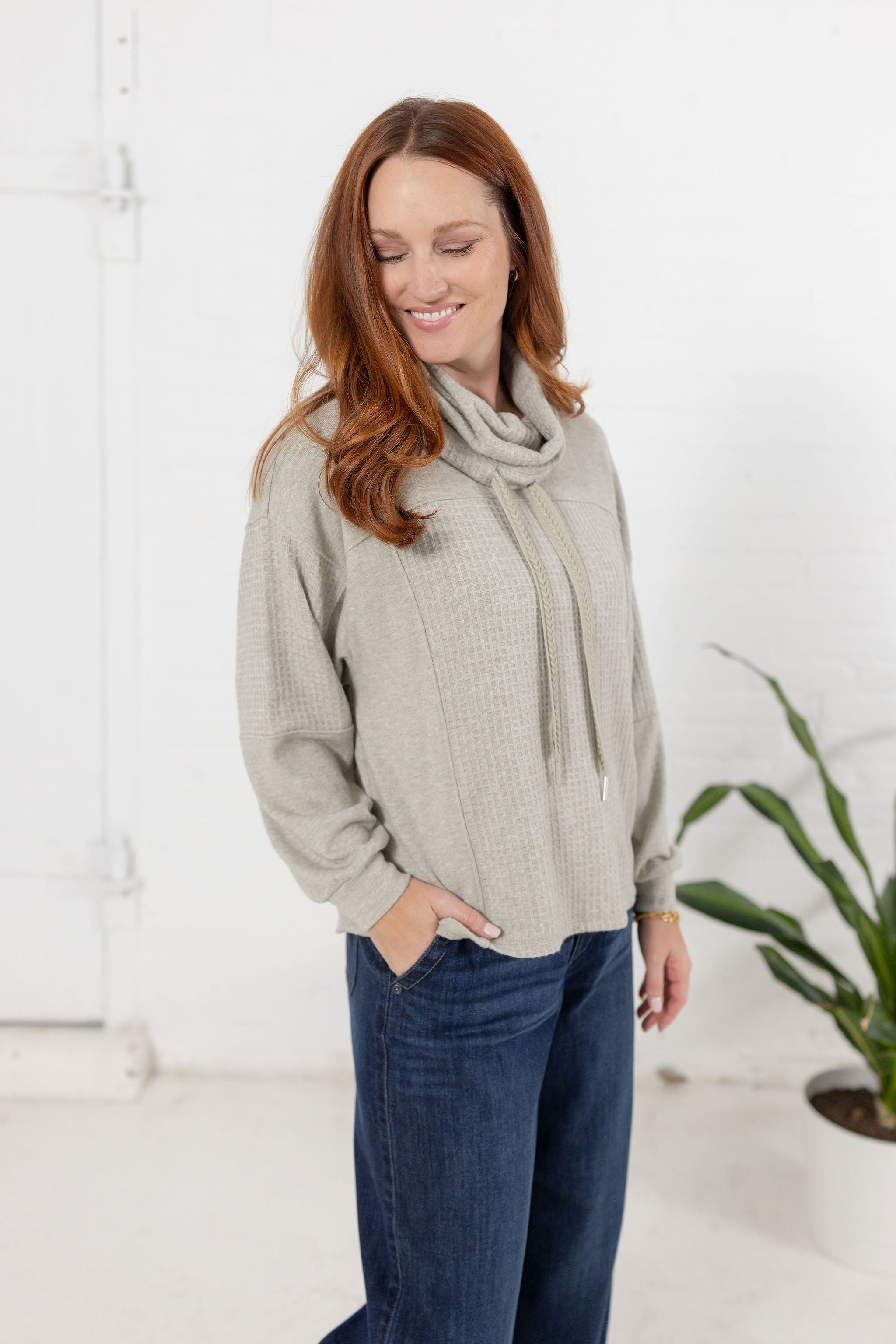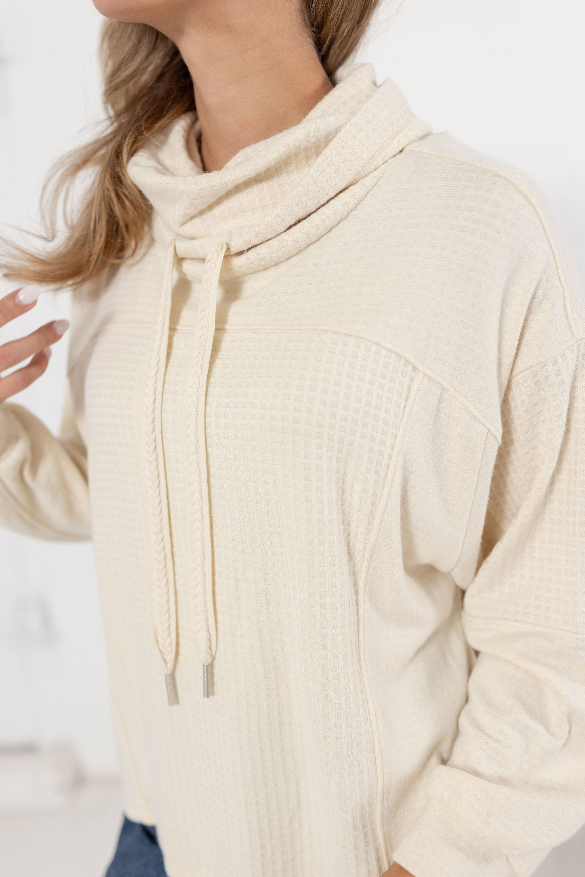 *FINAL SALE* Cowl Neck Mixed Media Long Sleeve Top