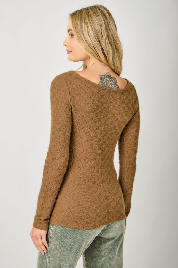 *FINAL SALE* Floral Textured Boat Neck Knit Top