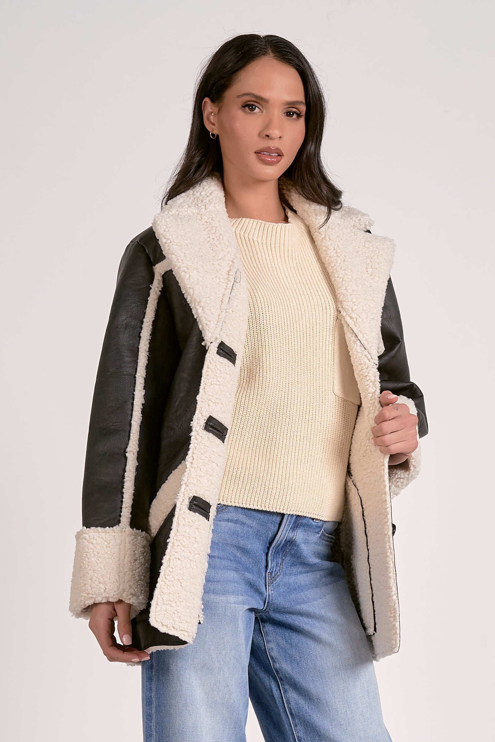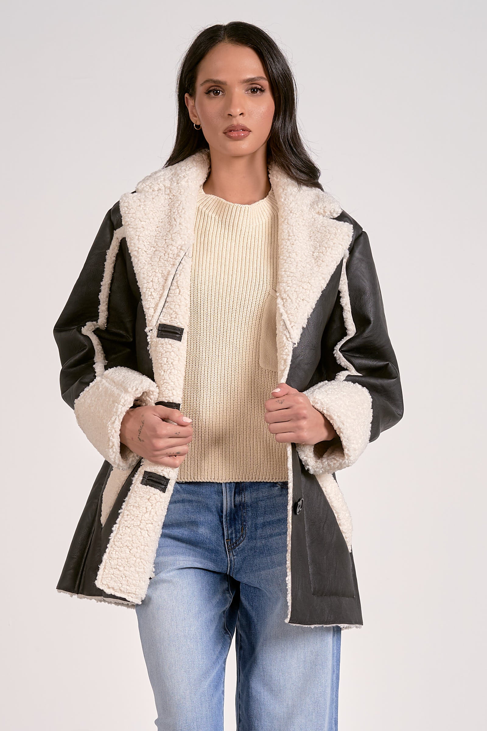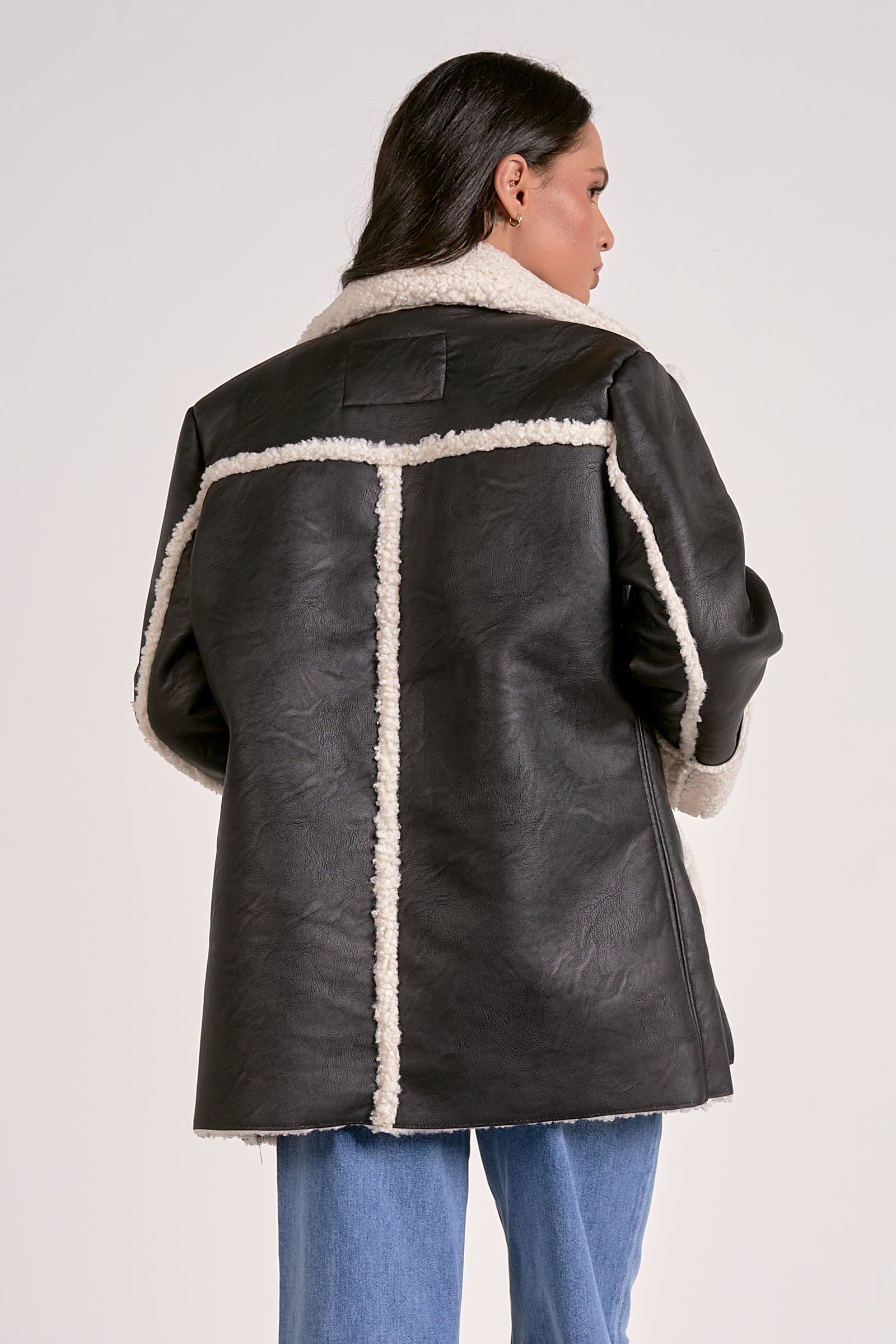 *FINAL SALE* Pleather Collared Jacket with Sherpa Lining and Detail