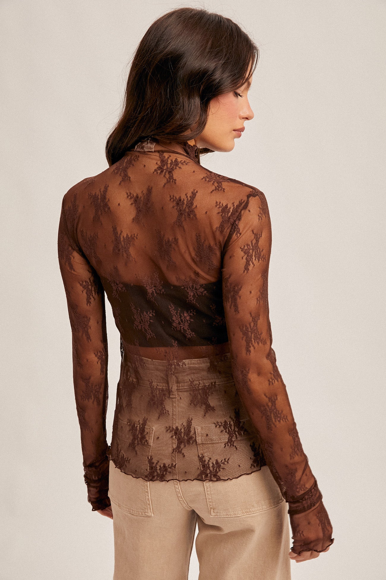 *FINAL SALE* Mock Neck Lace Long Sleeve with Thumbholes