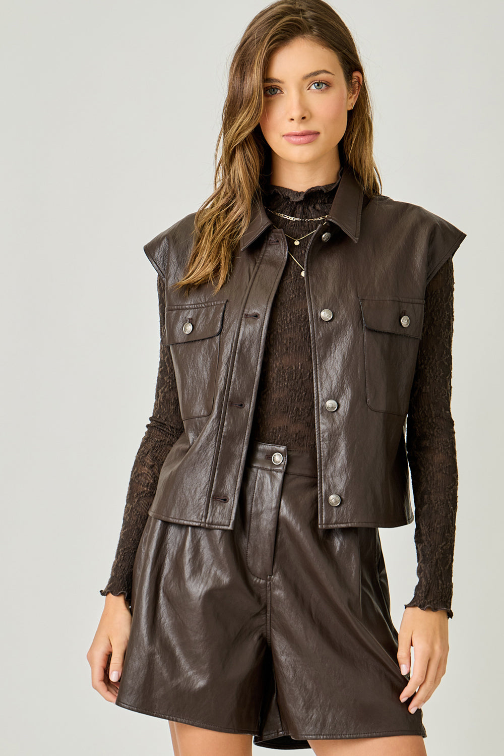 *FINAL SALE* Faux Leather Button Front Vest