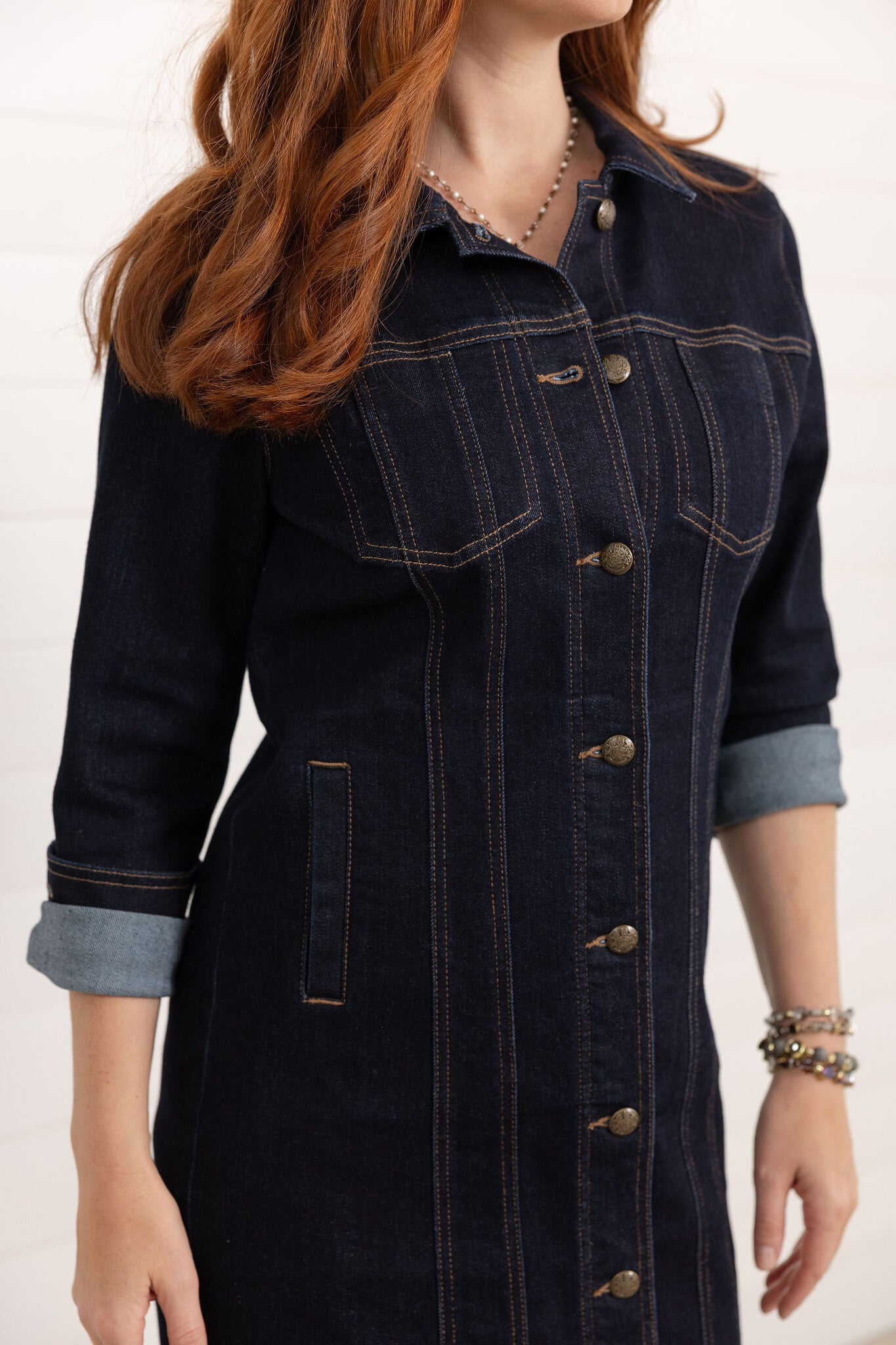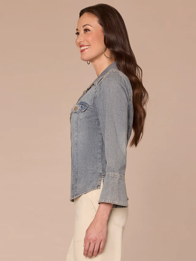 *FINAL SALE* Three Quarter French Cuff Sleeve Button Down Flap Pocket Denim Shirt