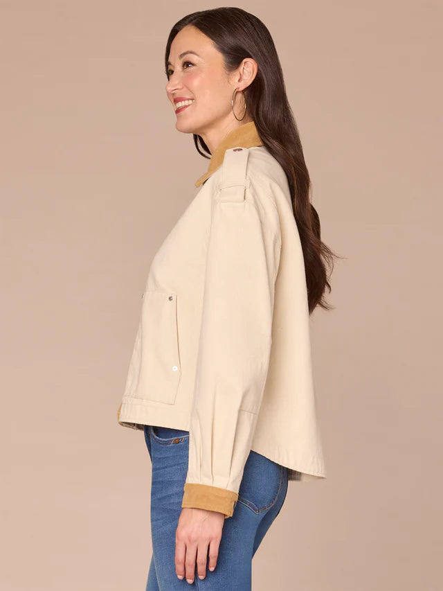 *FINAL SALE* Long Sleeve Corduroy Contrast Denim Jacket with Hidden Zip Front