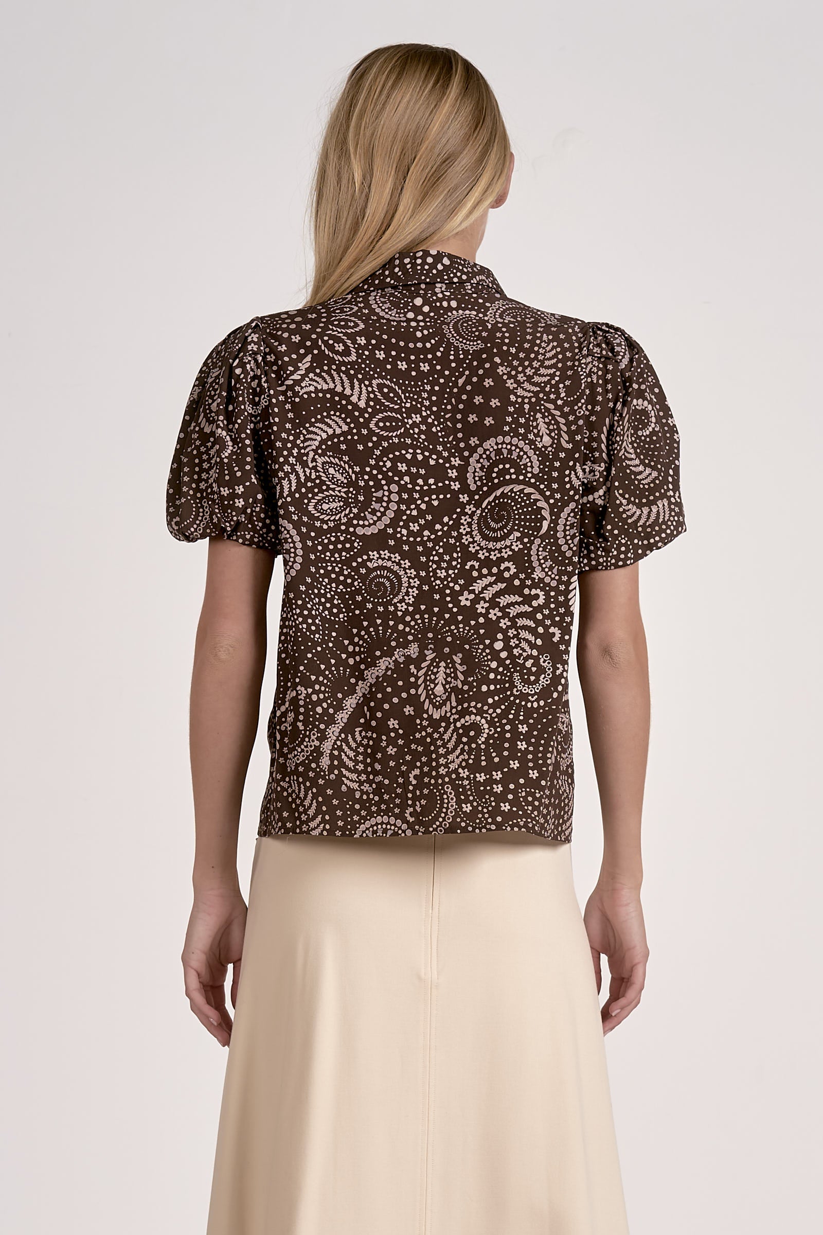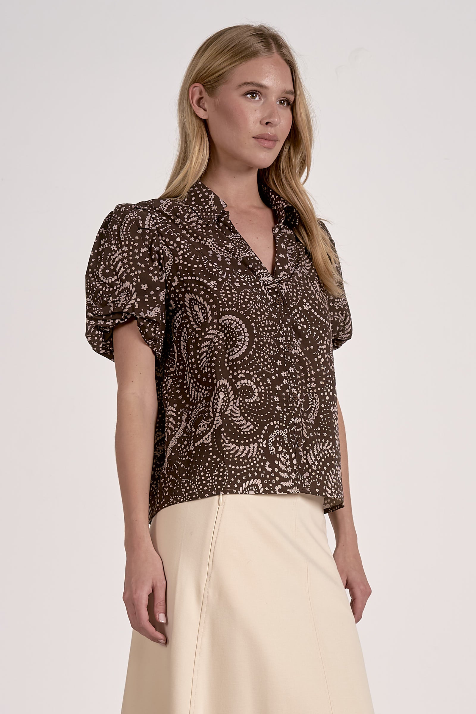 *FINAL SALE* V Neck Short Puff Sleeve Patterned Blouse