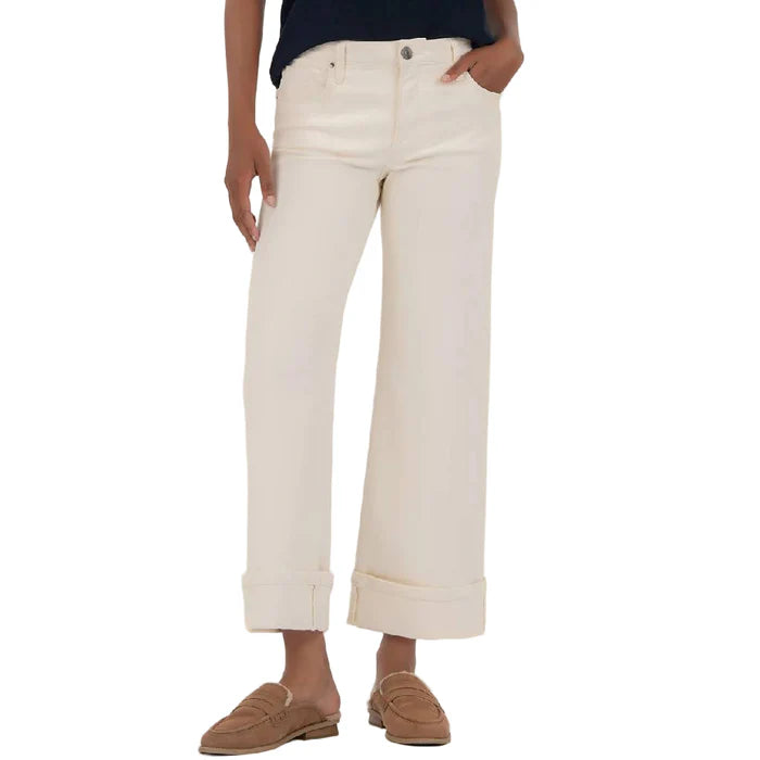High Rise Meg Wide Leg with Cuff - Candle