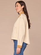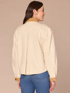 Long Sleeve Corduroy Contrast Denim Jacket with Hidden Zip Front