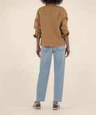 This caramel-colored jacket features a classic shirt collar and buttoned pockets for a timeless, structured look. Perfect for layering with effortless style.