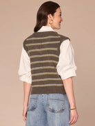 Below Elbow Blouson Sleeve Collar Neck Striped Twofer Sweater Vest