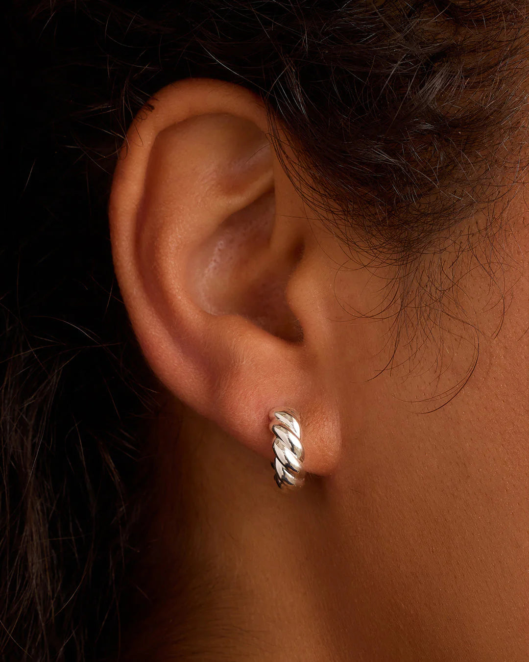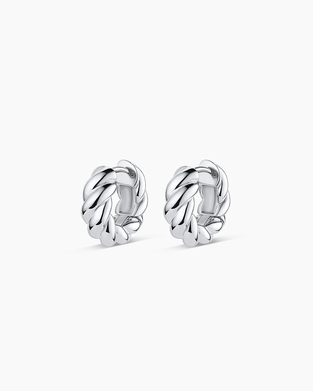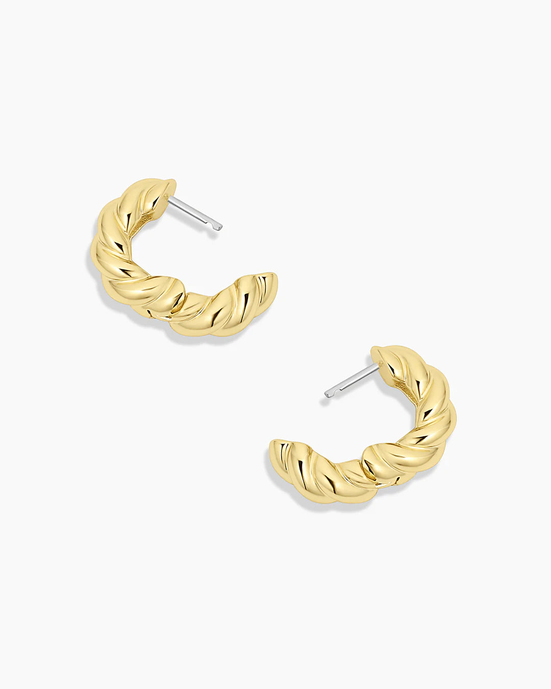 Elevate your style with the Crew Helium Huggies. Featuring a unique twist texture and helium design, these gold and silver plated huggie earrings transition seamlessly from day to night.