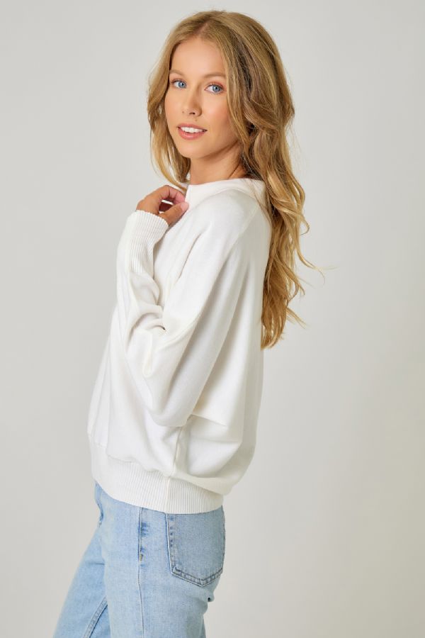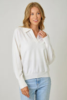 Combine timeless style with modern comfort in this polo sweater, featuring a classic V-neck and collar for a polished look. The long dolman sleeves create a relaxed and fashion-forward silhouette, while the ribbed knit on the bottom hem and cuffs adds cozy texture. This versatile pullover offers effortless sophistication for both casual and elevated ensembles, pairing perfectly with everything from trousers to jeans.