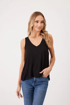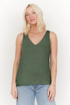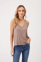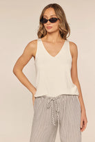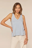 Sleek, simple, and endlessly versatile. This tank features a flattering V-neck front with a double-layered design for added coverage and comfort. Perfect for layering or wearing solo—your new go-to from day to night.