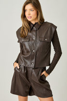 Faux Leather Button Front Vest