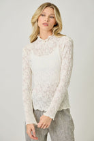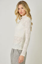 This delicate top features a unique textured knit and mesh construction, giving it a lightweight, dimensional feel that adds subtle interest to your outfit. The playful lettuce edge trim on the sleeves and hemline creates a soft, feminine silhouette, making it a charming and chic addition to your wardrobe. Perfect for layering or wearing on its own, this versatile top can easily be dressed up or down for any occasion.