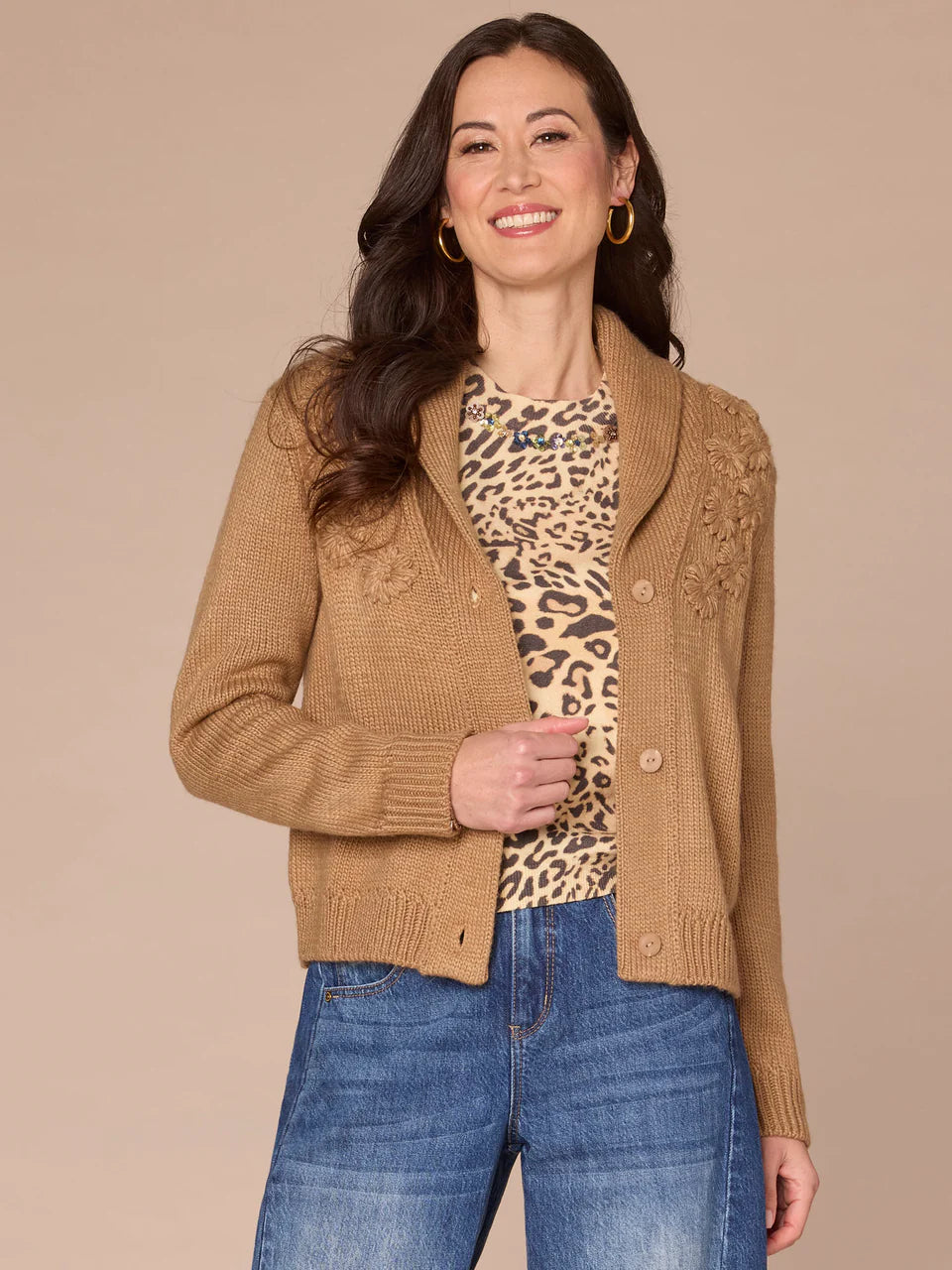 Long Sleeve Shawl Collar Button Down Embroidered Cardigan
