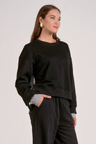 Mixed Media Sweatshirt Top with Sleeve and Back Detail