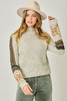 Mock Neck Sweater with Fair Isle Detail and Crochet Sleeve