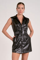 Embrace sleek, cruelty-free style with this pleather button-front dress, expertly designed with a cinched waist for a flattering and modern fit. Crafted from a durable and soft synthetic material, it offers the sophisticated look of leather with the easy, wipe-clean maintenance you'll love. This versatile and animal-friendly piece is a perfect statement addition to any wardrobe, blending chic design with everyday wearability.
