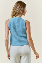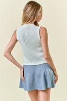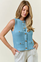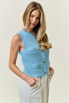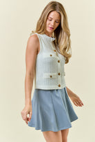 Sleeveless Button Down Sweater Top with Gold Placket Detail