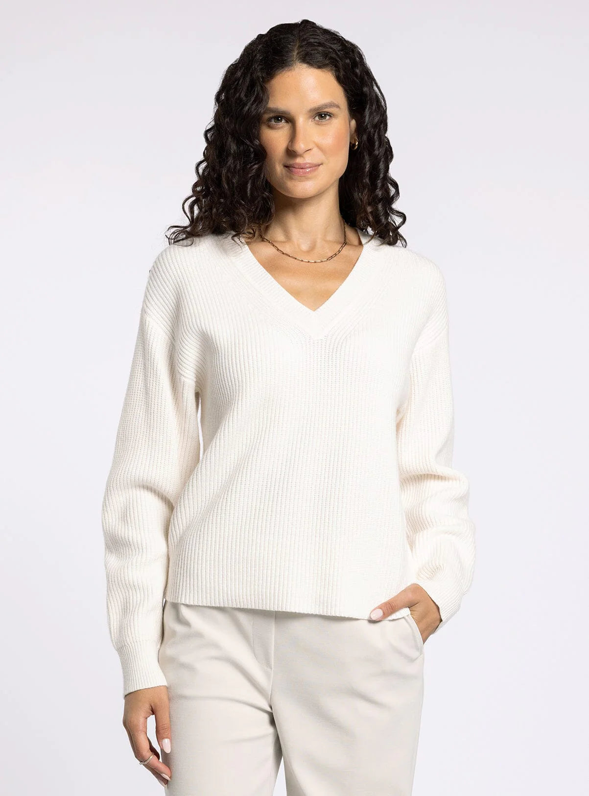 Crafted with a ribbed knit texture, this versatile V-neck sweater offers a cozy yet refined look for any season. The soft, stretchy fabric and flattering neckline create a timeless silhouette that pairs effortlessly with jeans, skirts, or trousers. Perfect for layering or wearing on its own, this essential piece adds chic comfort to your wardrobe.