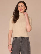 This modern take on the timeless turtle neck sweater is flattering, feminine, and extremely versatile. It has elbow-length cuff sleeves, a cable stitch mix design, and a straight hem.