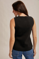 Sleeveless Longline Sweater Vest with Gold Buttons