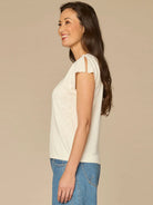 Cotton Embroidered Lace V-Neck Sweater Top with Short Split Sleeve