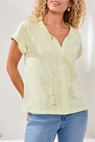 Cotton MB Short Sleeve Split Neck Top with Tie Tassles
