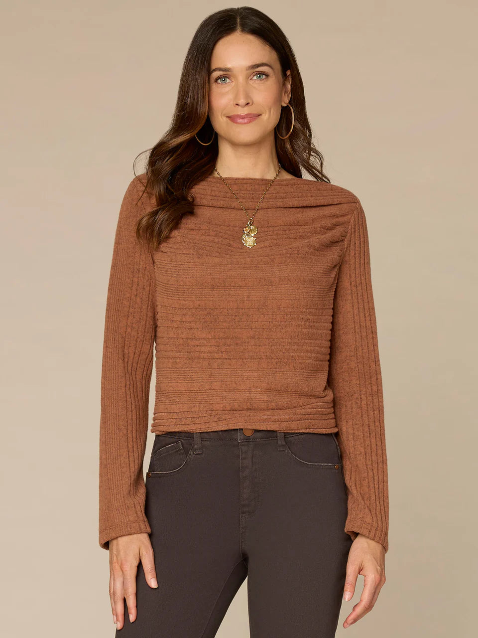 This soft wear-anywhere knit top serves as an essential base to countless outfits. Long sleeves and a shirttail hem make it a closet staple, while the flattering, drapey boat neck creates visual interest.