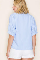 Half sleeve striped button-down top crafted with a relaxed fit for effortless, everyday style. Lightweight and easy to wear, it offers comfortable movement with a polished feel. A versatile staple that pairs seamlessly with denim, trousers, or casual skirts.