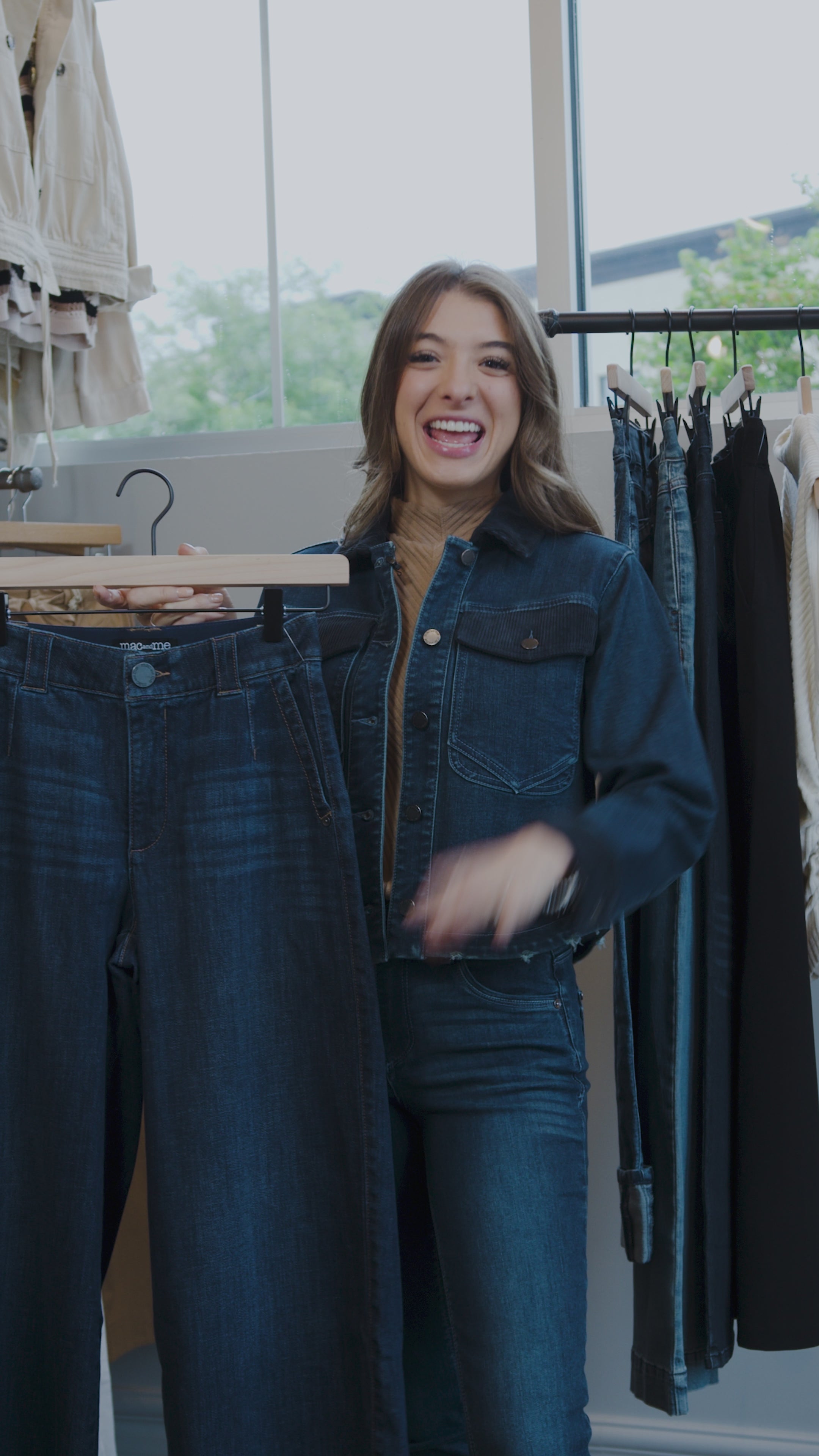 Elevate your denim game with the Mac and Me Skyrise Wide Leg with Tulip Hem—a modern silhouette with unexpected elegance. Designed with a sky-high rise for a sculpted, flattering fit through the waist, this jean opens into a relaxed, wide leg that flows effortlessly from hip to hem.