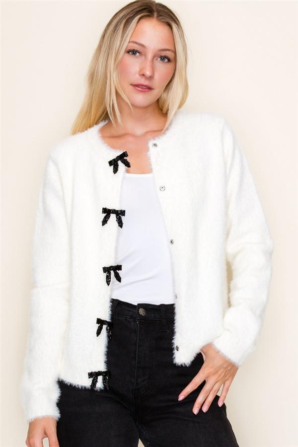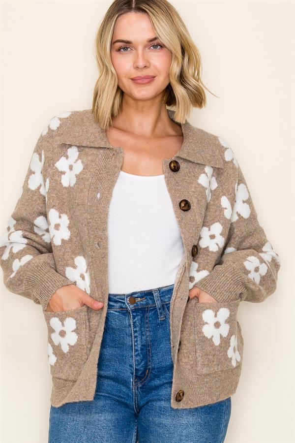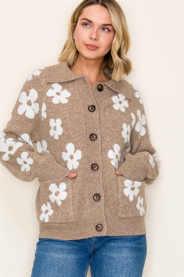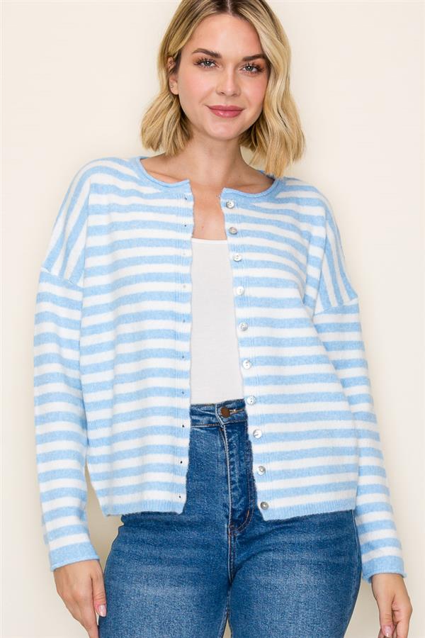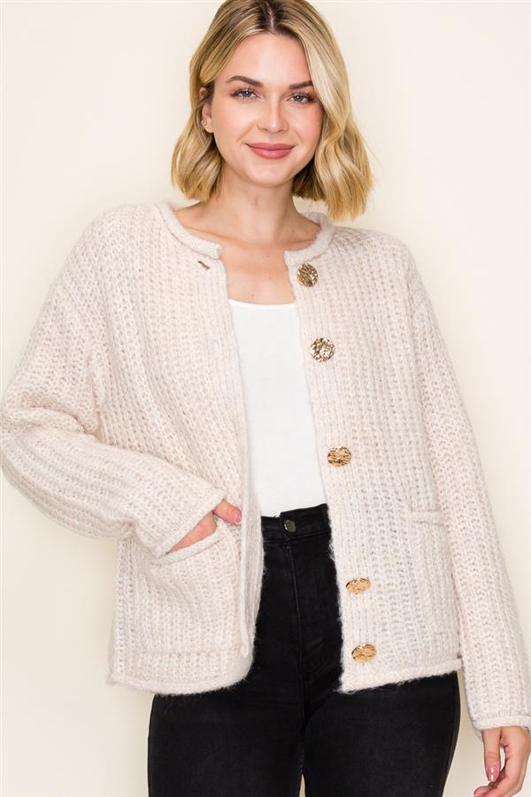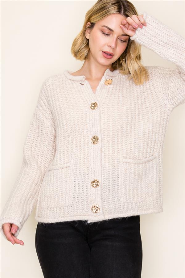 Button Front Knit Waist Length Cardigan