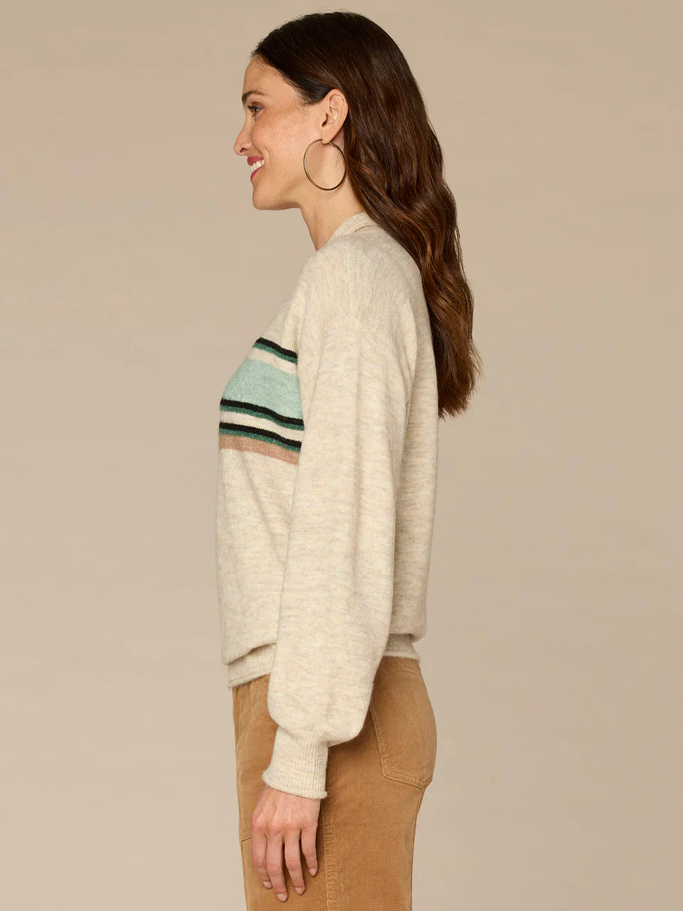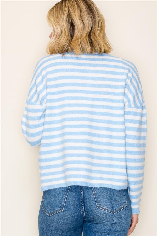 MB Cotton 3/4 Sleeve Striped Scoop Neck Sweater