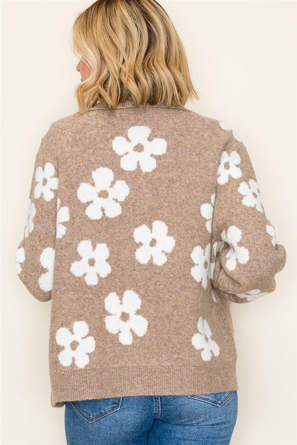 Fishnet Floral Print 3/4 Sleeve Sweater