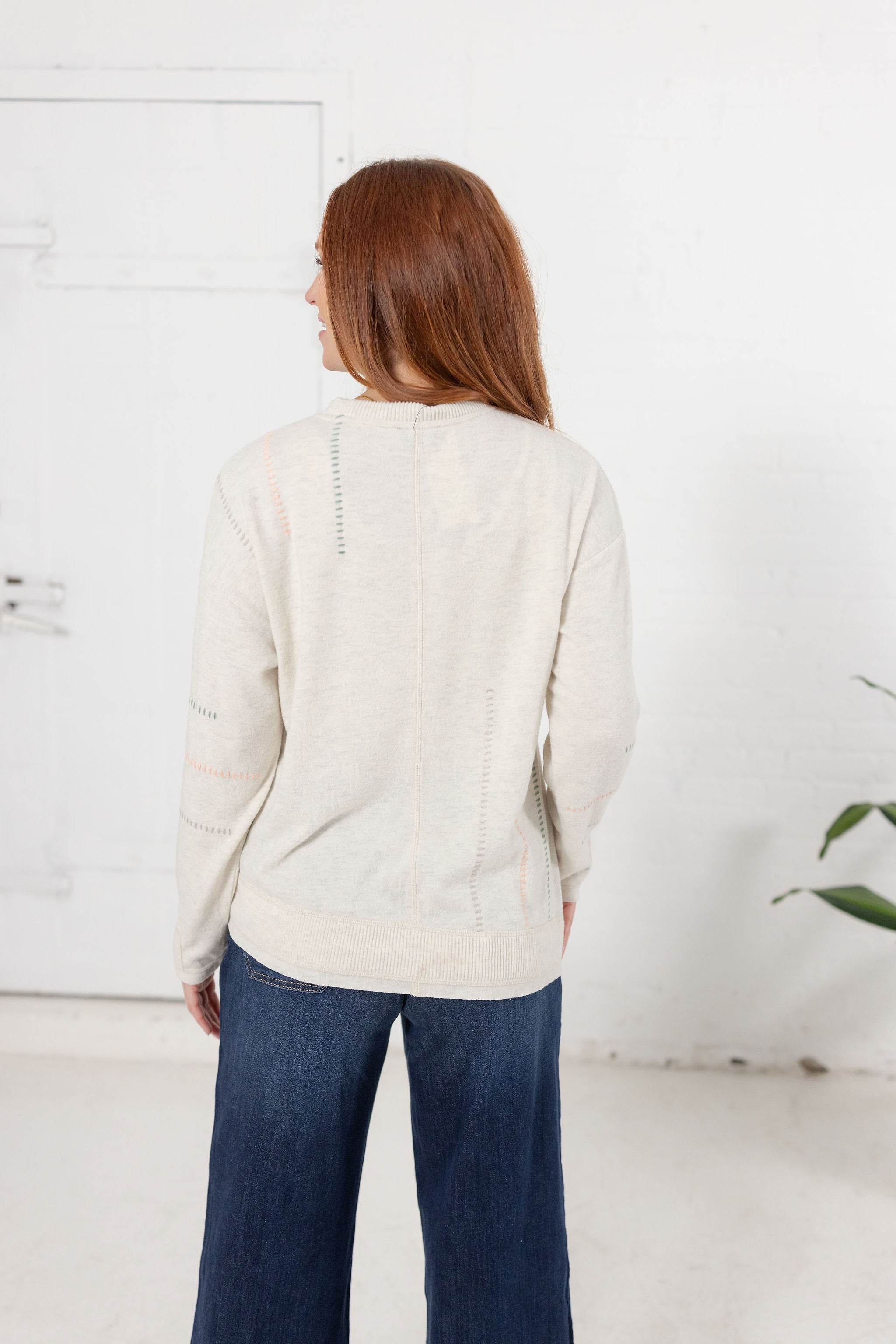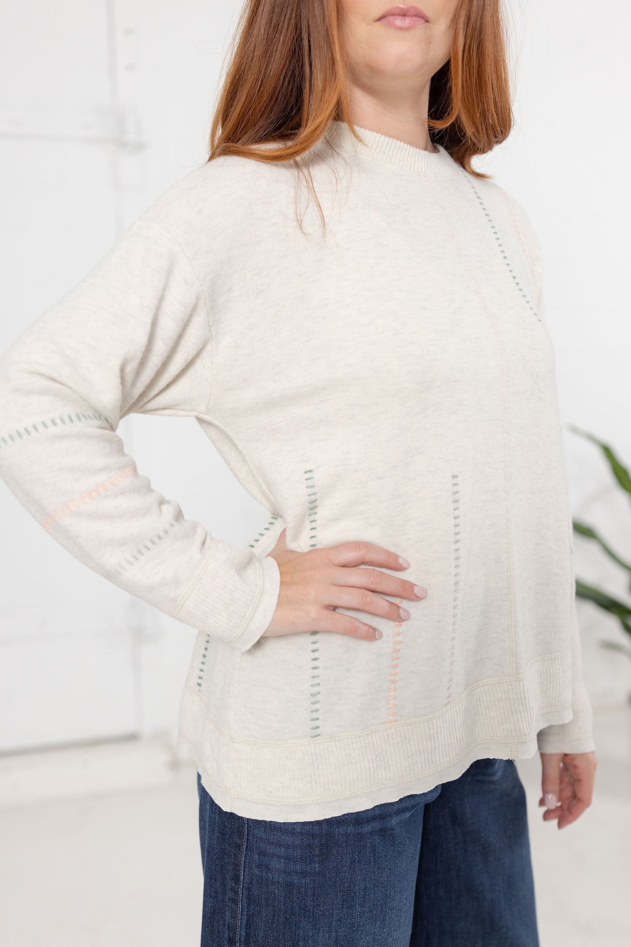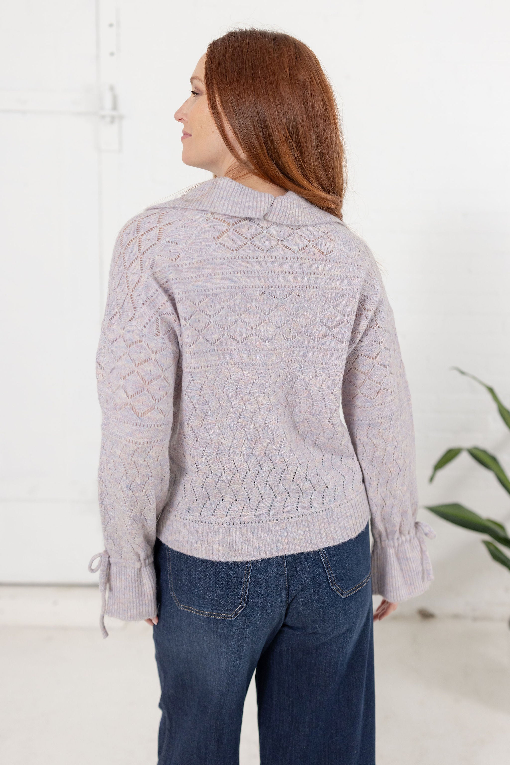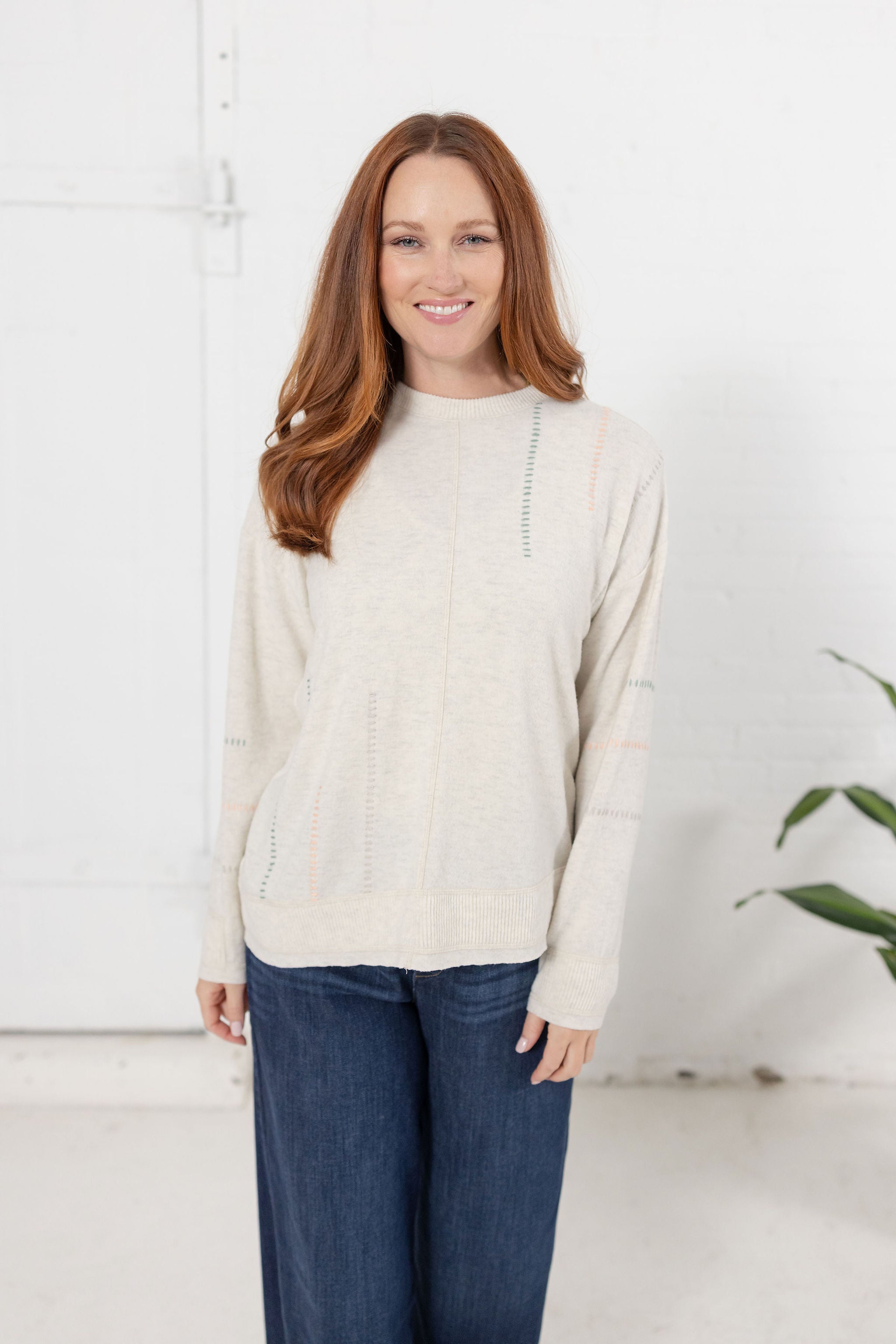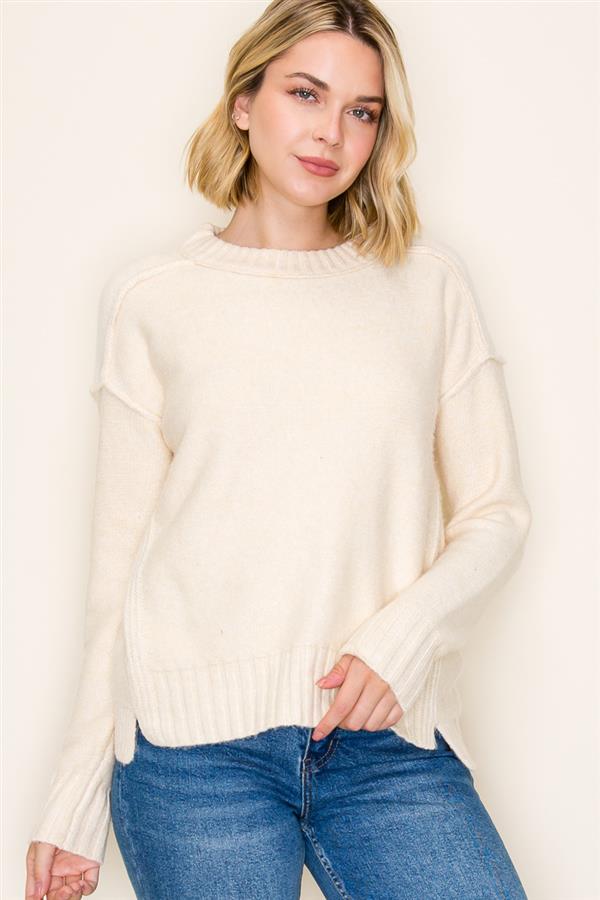 3/4 Sleeve Novelty Stitch Mix Sweater