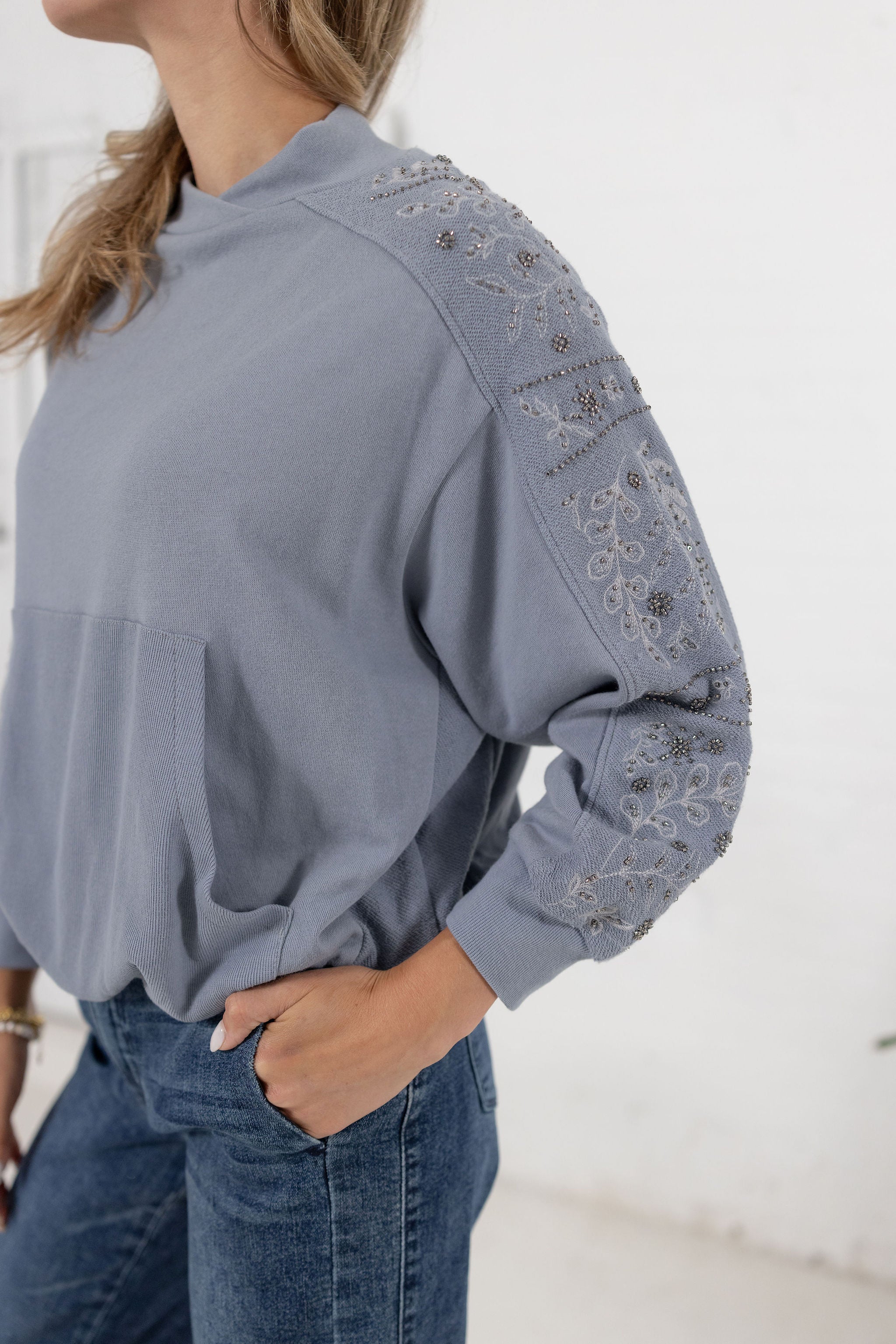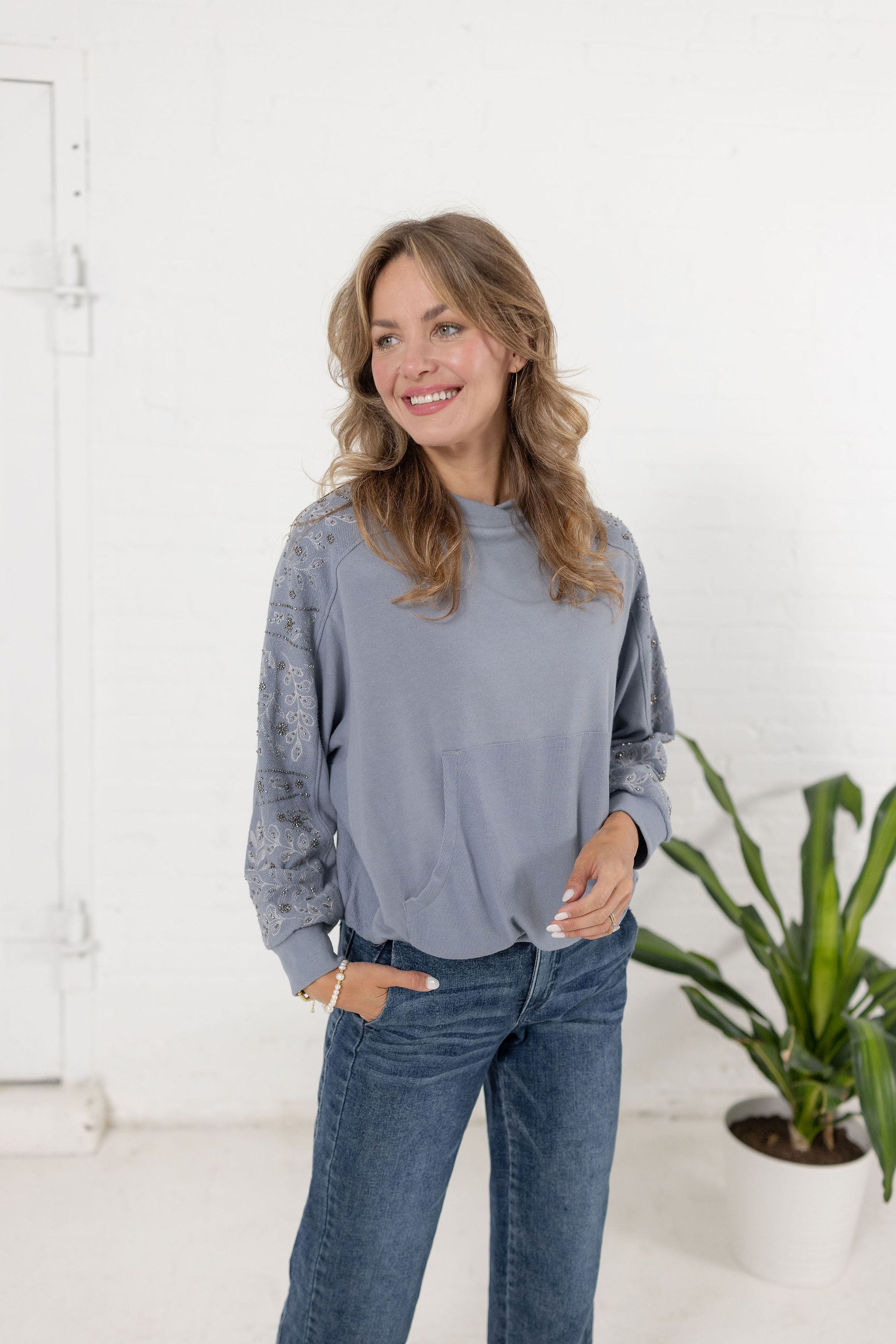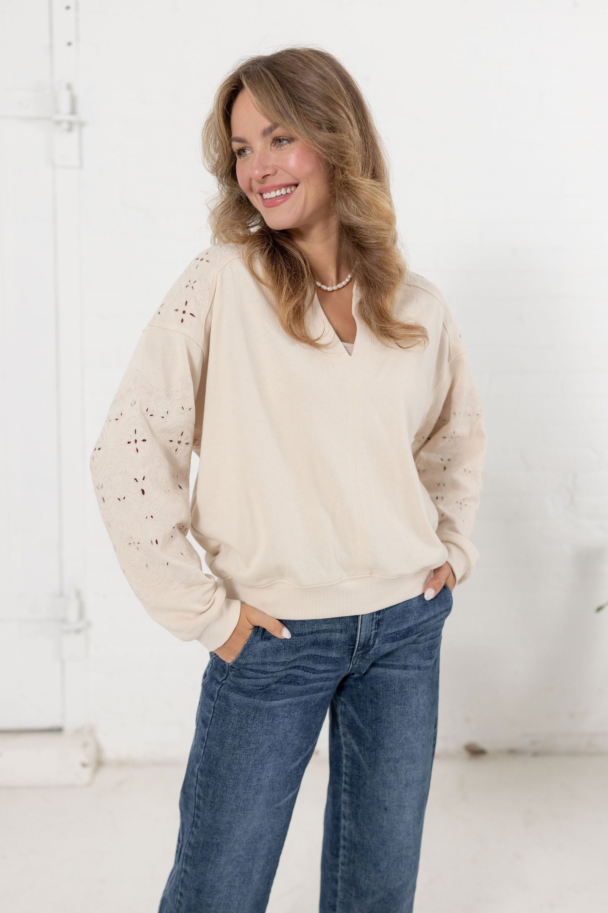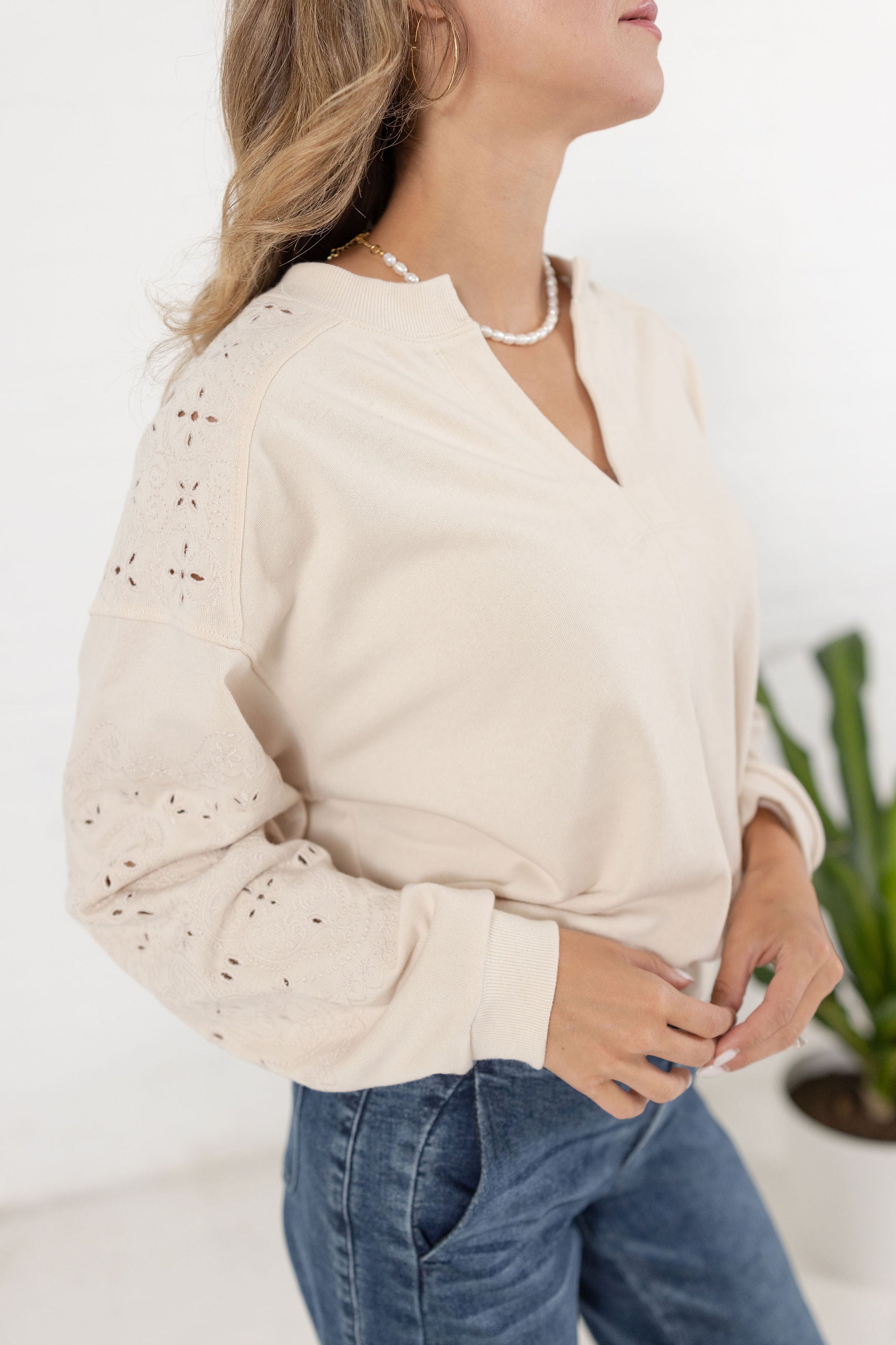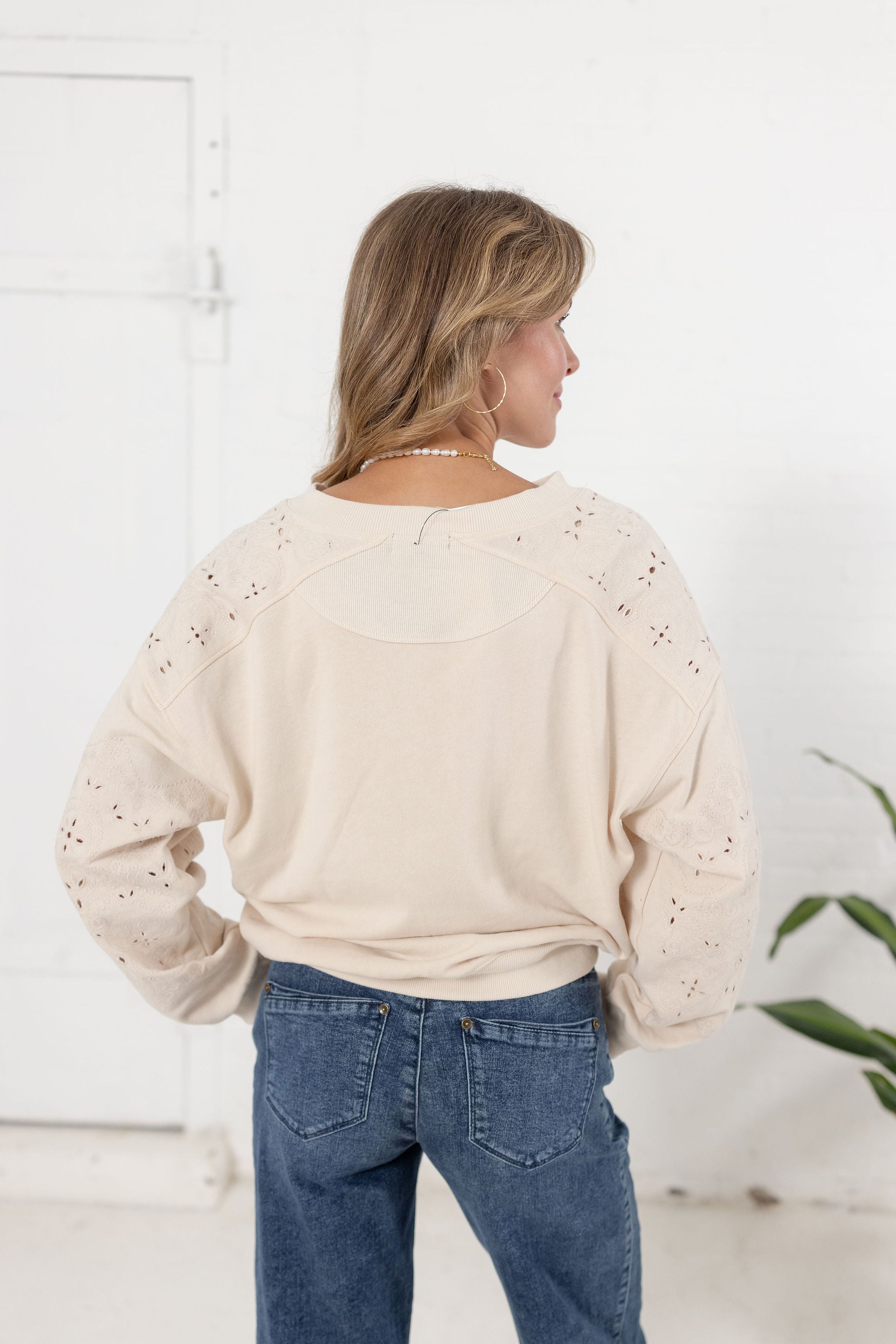 3/4 Sleeve Novelty Stitch Mix Sweater