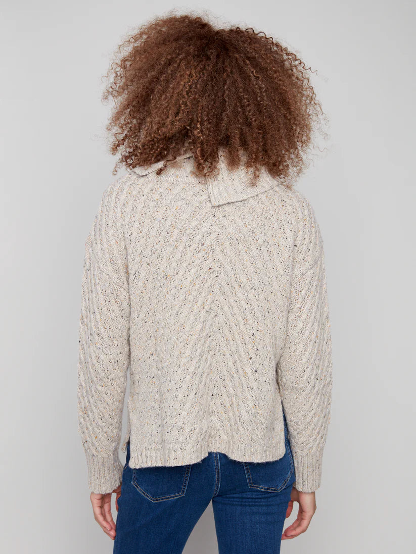 Cozy up in elevated style with our Diagonal Cable Knit Cowl Neck Sweater — a contemporary take on classic knitwear. Featuring a unique diagonal cable knit pattern, this sweater brings subtle movement and texture to your wardrobe. The relaxed cowl neck adds warmth and effortless elegance, perfect for layering or wearing solo on crisp days.