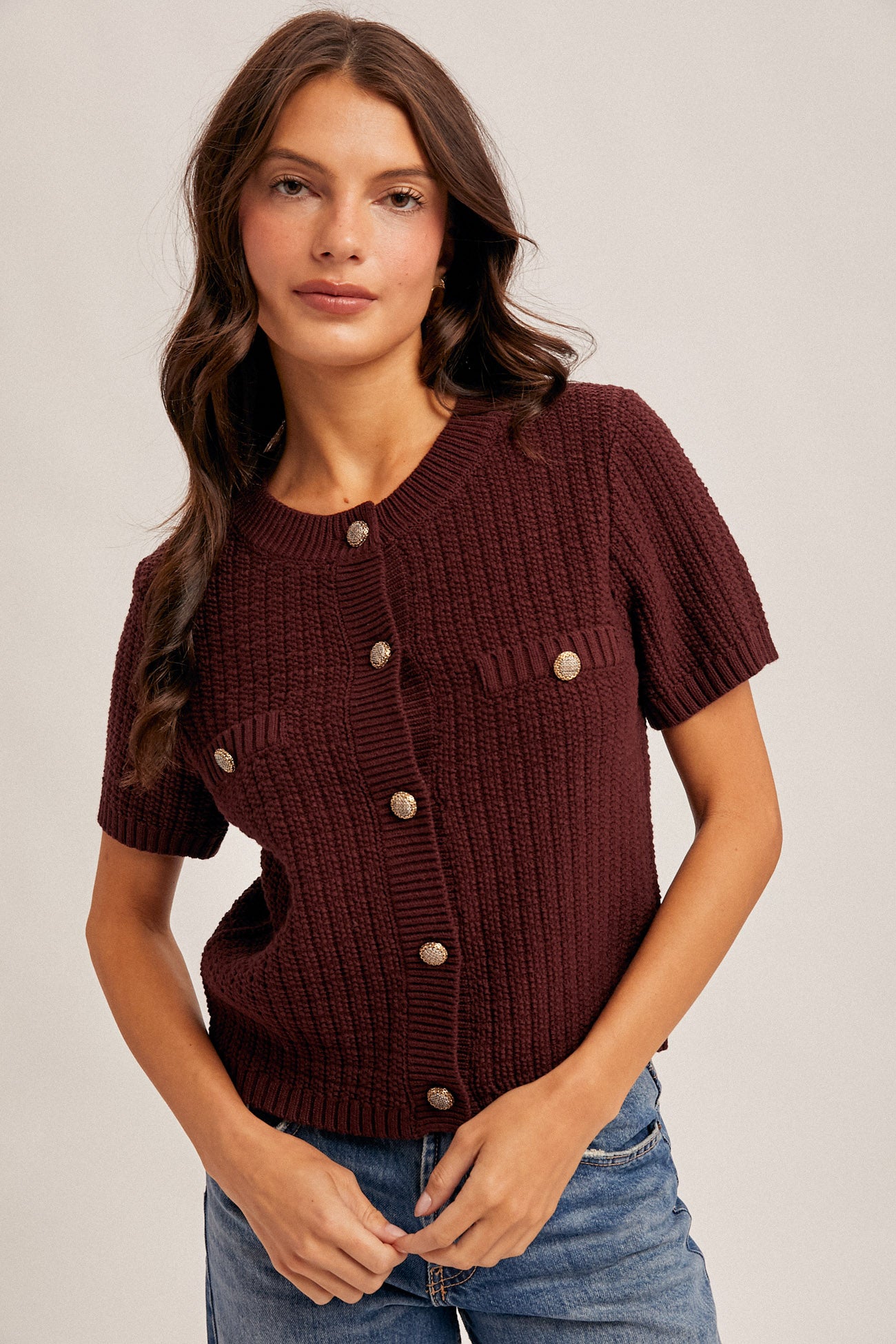 Add a touch of sophistication to your everyday style with this Textured Short Sleeve Sweater Top. The soft knit fabric and subtle textured design create a polished yet comfortable look. Perfect for layering or wearing solo, it’s an effortless piece for any season.