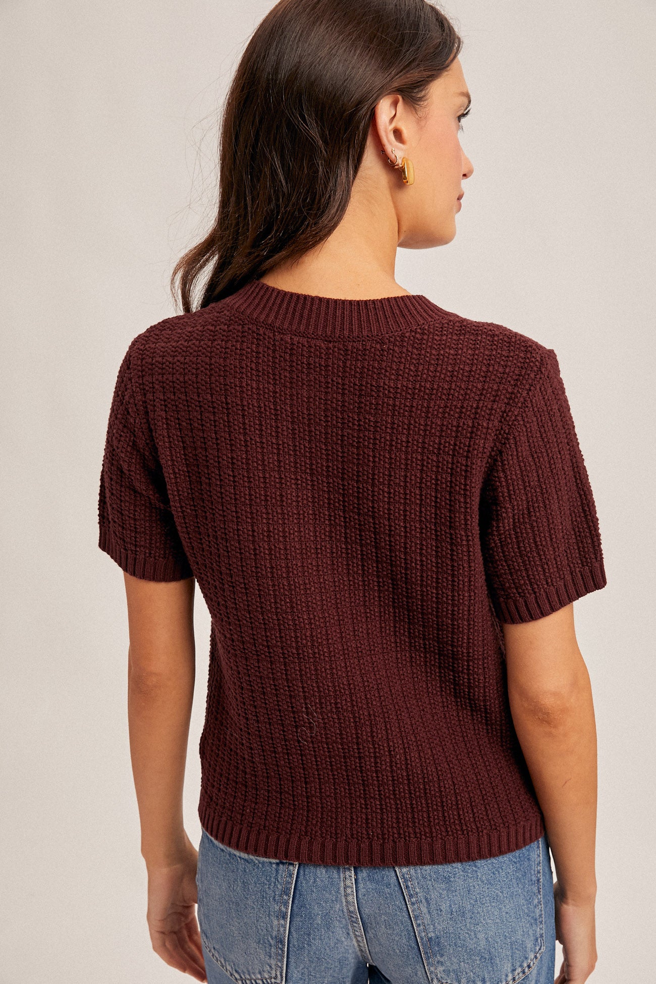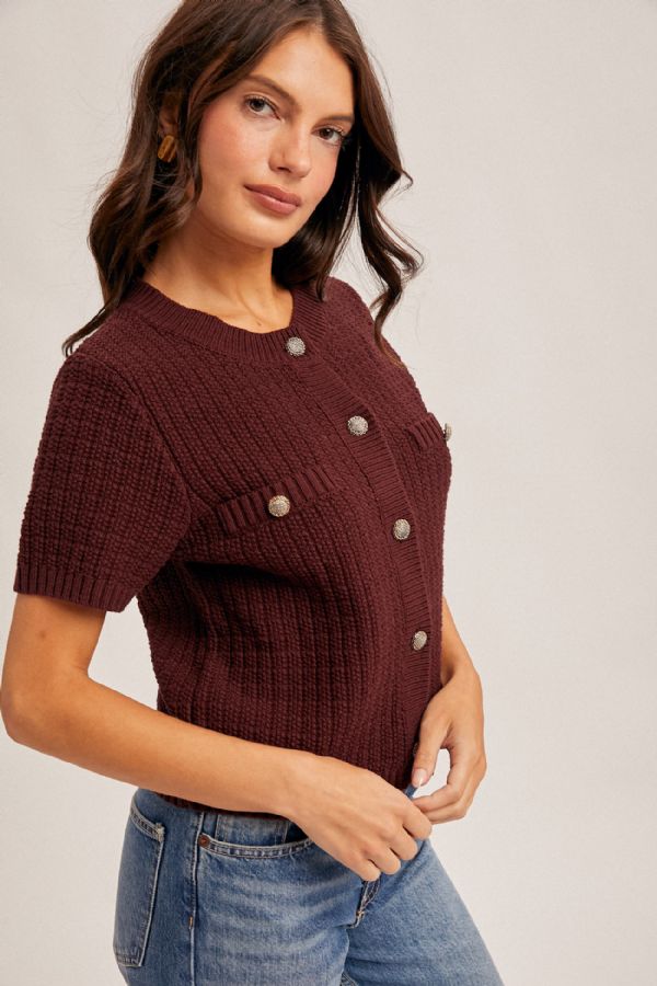 Textured Short Sleeve Sweater Top