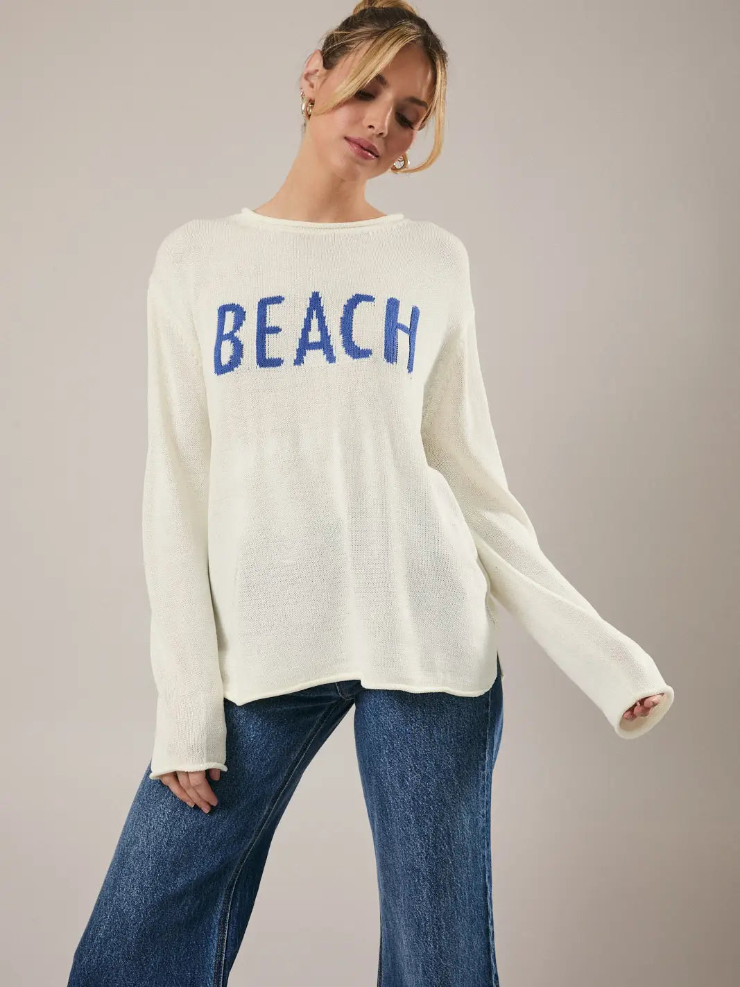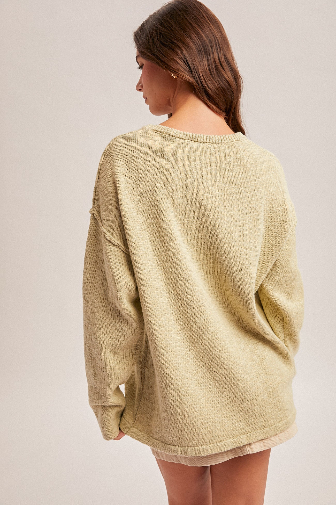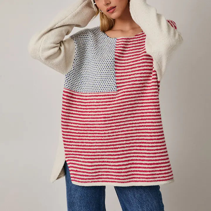 Boat Neck Long Sleeve Oversize Flag Sweater